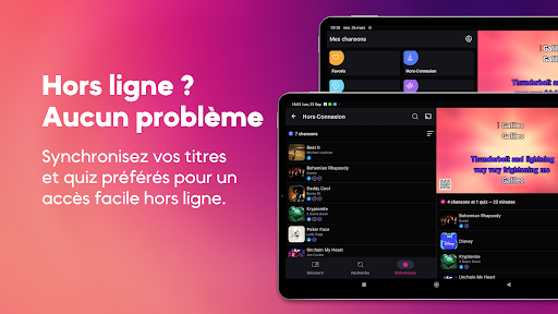 KaraFun, c\est du karaoké sur votre smartphone ou tablette ! Élevez votre expérience karaoké avec une immense bibliothèque de chansons et des quiz musicaux passionnants pour prolonger le plaisir ! Chantez des milliers de titres dans tous vos genres préférés avec vos amis. De plus, explorez des quiz interactifs de type trivia pour ajouter une couche supplémentaire d\excitation à chaque session ! — Gratuit — Profitez d\une sélection de chansons gratuites et d\aperçus de titres premium de notre catalogue. Testez toutes les fonctionnalités disponibles et explorez nos applications sur tous vos appareils pour une expérience karaoké complète. — Premium — Débloquez le catalogue complet de chansons et de quiz musicaux, synchronisez vos favoris pour une utilisation hors ligne, créez des playlists personnalisées et personnalisez votre expérience en ajustant le volume vocal, la tonalité et le tempo selon votre style. — Pro — Vous bénéficiez de tout ce que propose l\offre Premium — accès complet aux chansons, quiz musicaux, synchronisation hors ligne, playlists personnalisées et ajustements vocaux — avec des avantages supplémentaires pour les entreprises, tels qu\une licence commerciale, un code QR permanent pour un accès fluide, ainsi que des fonctionnalités avancées de gestion de marque et de contrôle des soirées. — Fonctionnalités — - Chanter : Découvrez le meilleur du karaoké avec des sessions sans interruption, sans publicité, un son de qualité studio et un accès à un catalogue premium de chansons. Découvrez des titres partagés par la communauté et profitez même de vos chansons préférées hors ligne pour une commodité ultime. - Jouer : Plongez dans l\univers des quiz et défiez vos amis pour tester vos connaissances musicales. Chaque quiz offre une expérience unique et rafraîchissante. - Contrôler : Prenez le contrôle total de votre expérience karaoké avec des réglages personnalisables de tonalité et de tempo, des volumes ajustables pour les pistes instrumentales et vocales, et la possibilité de personnaliser le nom du chanteur. Gérez facilement tout à distance depuis votre téléphone et maintenez la fête en continu avec de la musique de fond fluide. - Organiser : Organisez votre session de karaoké parfaite en créant des playlists personnalisées, en ajoutant des chansons à vos favoris et en profitant des mises à jour automatiques du catalogue. Gérez facilement la file d\attente des chansons pour que la fête se déroule sans accroc. - Vocal Match : Analysez votre voix et comparez-la à des milliers de chansons pour trouver celles qui vous correspondent le mieux. Découvrez quels titres s\adaptent à votre style vocal unique ! - Mode hors ligne : Organisez une soirée karaoké dans un endroit isolé ? KaraFun vous couvre même sans connexion Internet. Synchronisez vos chansons et quiz préférés hors ligne et continuez à vous amuser !
