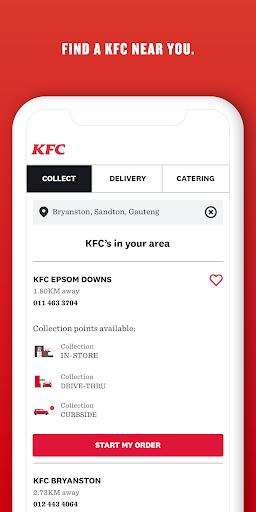 The official KFC South Africa app – the app that Hooks you up with the most exclusive offers. Order your KFC favourites online, and collect in-restaurant, Curbside, or via the Drive-Thru – limited delivery. - Delivery through the APP is limited to 450 restaurants at present. We will be expanding our delivery network in early 2022, watch this space. Collection is available at 850 restaurants, nationwide. - Order on the app for quick collection/pickup at your nearest KFC Depending on your nearest KFC, choose between collection up in-store (from front counter), or collection via the Drive-Thru (where available), or Curbside (where available) - Contactless payment: To protect you and our team, please consider paying online for a faster and fully contactless experience - When you are ready to collect your food, complete the \check-in\ request from your phone so that your food is prepared hot ‘n fresh. - Show your order number at the pick-up counter or drive-thru window to collect your order. - Simply register an account to start browsing the KFC delivery or collection menu and you’ll be enjoying our original recipe chicken in no time. Plus, get access to online exclusive deals you can only get through the KFC Hook-App South Africa. - Curbside collection - order online, park in a dedicated bay at the KFC restaurant and someone will bring your KFC order straight to your car. Available in over 50 restaurants.