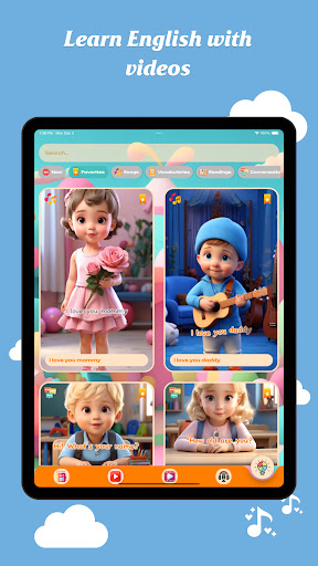 King English Kids est une application d\apprentissage de l\anglais engageante et conviviale spécialement conçue pour les enfants. En combinant l\apprentissage du vocabulaire, la pratique de l\écoute et des exercices de lecture en anglais, cette application crée un environnement d\apprentissage interactif et agréable, permettant aux enfants d\acquérir efficacement des connaissances tout en s\amusant. Avec la fonction d\apprentissage du vocabulaire, les enfants peuvent explorer de nouveaux mots à travers des images vibrantes et des sons vivants. L\application propose une large gamme de sujets tels que les animaux, les couleurs, les chiffres, les jouets, et bien plus encore. Les enfants écouteront et verront des mots en anglais, ainsi que leur prononciation et leurs significations. Cela aide les enfants à construire une solide base de vocabulaire dès leur plus jeune âge. Source de l\icône : flaticon.com. Source des sons : bensound.com.