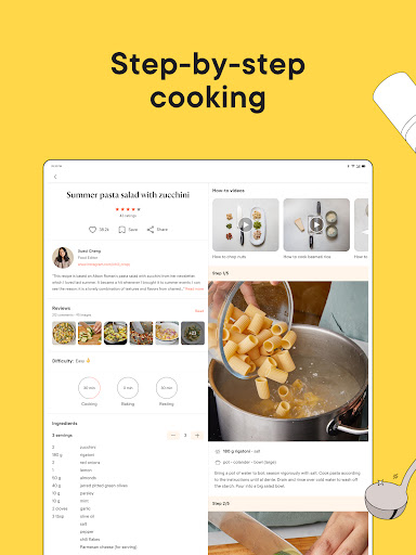 Make everyday cooking easy and enjoyable with the Kitchen Stories app. Build your confidence in the kitchen with our step-by-step recipe guides, save time and collect your favorite recipes in personal cookbooks, and join a passionate community of millions of hobby chefs from around the world. Our award winning app is simple to use and has a wide range of over 10,000 recipes that will appeal to beginners and more experienced home cooks alike. Download our free app and create delicious meals that will impress everyone at home. ENJOY EVERYDAY COOKING WITH KITCHEN STORIES Get inspired each day by thousands of free food recipes, tips, and articles. CREATE PERSONAL COOKBOOKS Set up your personal profile and save your favorite recipes in personalized cookbooks. EXPLORE COMMUNITY RECIPES AND SHARE TIPS Dicover recipes from our community, upload photos of the dishes you’ve cooked and exchange cooking experiences with others in the comments section. PRACTICAL COOKING TOOLS Easily adapt ingredient measurements according to serving size, use our timers at each recipe step and enable cooking mode to be guided effortlessly step-by-step. FIND THE PERFECT RECIPE Thanks to our search feature, you’ll find the perfect recipe for your taste and nutritional preferences. Our recipe box offers a variety of tasty nutritious recipes for your kitchen. Learn how to cook vegetarian and vegan dishes, low-carb, gluten-free, and low-calorie options. From breakfast to dinner, you can count on our selection of crowd-pleasing tasty and healthy recipes – including weeknight favorites, seasonal twists on classics, trends and tastes from around the world. LEARN HOW TO COOK WITH OUR GUIDED RECIPE EXPERIENCE Whether you’re a beginner or an advanced home chef, there’s always something new in our recipe box, with instructional HD recipe videos and tips from our expert team of editors and chefs. Activate \\cooking mode\\ and let it guide you with easy-to-understand, step-by-step photos and instructions for each tasty recipe from the Kitchen Stories platform. Don’t forget to upload a photo of your dish and share it with our hungry community once it’s ready! RECIPES FOR EVERY OCCASION Is it everyday cooking you’re after, or is today a special occasion? Maybe you’re eating alone or making a tasty dinner for the entire family? Need a quick snack or help with planning a three-course meal with appetizers and dessert? We’ve got you: Our recipe box is packed with cooking and baking recipes. Browse by difficulty level and preparation time, plus use our handy measurement converter to adjust the measurements according to the desired servings. For easy, on-the-go planning, place all your recipes in easily manageable cookbooks. DOWNLOAD OUR FREE APP TODAY Download now and sign up for your free account to get started. PRAISE FROM THE MEDIA “Kitchen Stories offers up a free collection of recipes, which users can sort in different ways. The videos here are instructive and well produced, so you’ll be sure to get a clear picture of the recipe.” — Washington Post “Kitchen Stories is a cleanly-designed recipe guide app with step-by-step instructions that even a cuisine dunce would be hard-pressed to misinterpret.” — The Guardian “Kitchen Stories offers inspiration and…prides itself on high quality, professional produced content.” — Forbes --- Hungry for more Kitchen Stories? We’re always open to ideas and feedback! Get in touch with us here: hello@kitchenstories.com You can find our Terms of Use here: https://www.kitchenstories.com/en/terms/ Happy cooking! Your Kitchen Stories Team