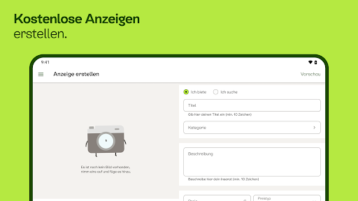 eBay Kleinanzeigen ist jetzt Kleinanzeigen! Kleinanzeigen - dein Online-Marktplatz zum Kaufen, Verkaufen, Tauschen und mehr. Entdecke zahlreiche Kategorien wie z.B. Second-Hand Möbel, Mode, Sneaker, Elektronik, Anzeigen für Immobilien und sogar Stellenanzeigen. Kleinanzeigen und online Marktplatz – deine Vorteile: Lokal kaufen und verkaufen, verschenken oder tauschen Günstige Angebote finden – Lieblingssachen zum fairen Preis Kostenlose Anzeigen aufgeben und verkaufen: Foto machen, Beschreibung formulieren, Preisangabe hinzufügen – fertig ist deine Kleinanzeige! Stellenanzeigen für Jobs in deiner Nähe – jetzt passende Stellenanzeigen finden und bewerben Über 36 Millionen Nutzer im Monat und 50 Millionen gleichzeitig verfügbare Angebote in zahlreichen Kategorien Finde Elektronik, Second-Hand Mode, Sneaker, Gebrauchtwagen oder Möbel. Du willst eine Wohnung mieten oder Immobilien kaufen? Bei Kleinanzeigen findest du Anzeigen aus deiner Nachbarschaft. Haus & Garten Finde Möbel und Einrichtungen für dein Haus oder deine Wohnung Entdecke Anzeigen für Möbel in gutem Zustand, wie Esstisch, Bett, Sofas, Couch oder Lampen Spare beim Kauf von Gartenmöbeln, Pflanzen und Werkzeugen für Heimwerker Elektronik Hol dir Unterstützung für den Haushalt mit elektronischen Geräten, wie Kaffeemaschine, Staubsauger, Waschmaschine & Co Entdecke Elektronik und spare bei TVs, Anlagen und mehr Finde Smartphones und Konsolen, z.B. Playstation oder Xbox Immobilien Immobilien kaufen oder Wohnung mieten: Bei Kleinanzeigen wartet dein neues Zuhause auf dich Immer die neuesten Anzeigen für Immobilien wie Wohnungen, Häuser, Ferienhäuser und gewerbliche Immobilien, deutschlandweit Gezielte Suche nach Quadratmeter, Zimmeranzahl, Ausstattung wie Balkon, Dachterrasse und nach Immobilienart (Wohnung, Haus, etc.) Second-Hand Mode & Vintage Accessoires Suche Mode nach Marke, Größe, Farbe, Style und anderen Filtern Kaufe Schmuck, Kosmetikartikel, Vintage Taschen, Sneaker und mehr Entdecke Vintage-Pieces & Sammlerstücke Familie, Kind & Baby Alles für Kinder und alles, was den Familienalltag erleichtert Suche nach Babykleidung, Kindermode, Spielzeug, Kinderfahrzeugen oder Babysachen Finde die besten Angebote für Babys, Kinder und die ganze Familie – gebraucht, aber wie neu! Gebrauchtwagen & mehr Finde Gebrauchtwagen von gewerblichen und privaten Anbietern Kaufe Ersatzteile, Accessoires und mehr Jobs & Stellenangebote Suche nach Berufsfeld, Jobtitel und Branche Bewirb dich auf Stellenanzeigen für Minijobs, Nebenjobs und Studentenjobs Entdecke den online Marktplatz zum Kaufen, Verkaufen oder Tauschen. Egal ob neu oder gebraucht, hier findest du alles, was du brauchst. Du willst ordentlich ausmisten? Erstelle kostenlose Anzeigen in nur wenigen Minuten. Lokal, umweltfreundlich und günstig. Du hast Fragen oder Anregungen? Deine Meinung ist uns wichtig. Schreib uns an androidsupport@kleinanzeigen.de. Wir freuen uns auf dein Feedback.
