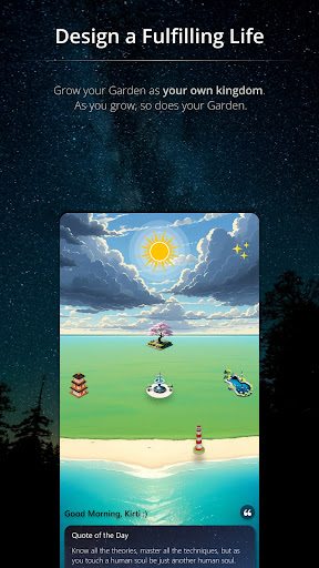 Welcome to Kosma, a gamified version of your life, the only lifestyle-design app you’ll ever need to become the best version of yourself. From self-growth journeys to habit coach and task manager to meditative music, it’s all here. Nurture your “Garden of Being,” which grows as you complete habits and tasks. Along the way, we also explore the burning topics of life, like habits for a happy life, mindset of champions, and meaning of life. WHY KOSMA? When all aspects of our existence are interconnected – our goals, growth, lessons, tasks, and habits – wouldn’t it be better if there was a single app that brought all these aspects of life into a holistic experience where we could track our progress? Enters Kosma, visualizing your growth as a game where you nurture your being like a Garden. Kosma is a journey crafted with behavioral science where you explore and develop yourself with a wide range of lessons from the brightest minds – Socrates, Nietzsche, Marcus Aurelius, Seneca, Rumi, Gibran, Carl Jung – and the best philosophical schools of thought – like Stoicism and Existentialism. To top it off, use the built-in habit coach to practice these lessons as well as plan your tasks and life goals with Quests. It’s a lifestyle design “Swiss Knife”, a promise of maximal growth! WHO IS KOSMA FOR? Anyone interested in growth and topics like: - Purpose of life, ego and identity - Physical, mental and emotional health - Managing stress and anxiety - Human motivation and thought process - Compassion, love and empathy - Building good habits and breaking bad ones - Happiness, mindfulness and awareness - Winner mindset, motivational quotes and productivity - Achieving dreams, business ideas and solving problems - Scientific frameworks, philosophy and mental models - Meditation, focus and calmness - Spirituality, enlightenment and heaven KEY FEATURES: GARDEN - Gamify your growth: Make self-development fun by visualizing your growth with the “Garden of Being” - Track progress: Level up your character by earning Karma, which you get for completing tasks & missions MISSIONS TO LEARN AND GROW - 200+ letters, 40+ habits: Build a balanced personality by setting on 3 journeys divided across 3 levels - Maximize your potential: Build relentless work ethic, cultivate compassion, and master your mind to ensure success in every pursuit FORM HABITS FOR SUCCESS - Build Rituals, not just habits: Each ritual has multiple habits you do at specific time of the day. When stacked thus, one good habit triggers the next, keeping you at your best everyday - Set alarms: Never miss a habit with custom reminders and tunes ACCOMPLISH TASKS WITH QUESTS - Dream it, plan it, achieve it: Use the Quests section to plan your tasks and organize them into lists. Never lose sight of what matters, be it daily tasks or goals for relationship, profession, and more - Set repetition and reminders: Planning gets easier as we automatically create your repeating tasks and send reminders at the right time KNOW YOURSELF WITH JOURNALS - Wide range of journals: From guided journals based on cognitive behavioral therapy (CBT) to reflecting on quotes & life events, it’s all here - Surreal experiences make journaling fun: Immersive diaries make every journaling session a memorable “Me Time” SOUNDSCAPES THAT SOOTHE - Binaural beats: Use scientifically crafted sounds to for better sleep, relaxation, focus, or meditation - Nature’s music: Beat stress and calm the mind with sounds like rain, thunder, waves, and river HOW DOES KOSMA WORK? As you walk this balance of science and philosophy, a paradigm shift in perspective dawns, breaking the limiting beliefs that may have been holding you back from fulfilling your potential and being the best version of yourself. You cultivate a limitless personality – the perfect mix of a free mind, a pure heart, and a healthy body – needed to realize the great dreams that keep you ticking. Made with love by Zeniti Wellness.