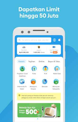 Bukti kalau Kredivo #Sefleksibelitu (baca sampai habis!) - Produk pembiayaan dengan pembayaran secara angsuran: Bayar dalam 1 bulan dan cicilan tenor 3, 6, 12, 18 dan 24 bulan - Suku bunga: 0% untuk bayar dalam 1 bulan dan cicilan 3 bulan, mulai 1,99% per bulan untuk cicilan 6, 12, 18 dan 24 bulan (khusus akun Premium). Persentase bunga tahunan maksimum (APR) 41,51% - Limit: limit maksimal yang bisa diperoleh mencapai Rp50.000.000 - Contoh simulasi: Kamu mengajukan cicilan sebesar Rp2.000.000 selama 12 bulan, dengan suku bunga 1,99% per bulan, maka yang harus dibayarkan per bulannya sejumlah Rp206.480, dan total pembayaran yang dilakukan sebesar Rp2.477.760 Mau belanja online atau offline dengan cicilan tapi tidak punya kartu kredit? Butuh pinjaman kilat untuk keadaan mendesak? Mau mengajukan aplikasi kredit tapi prosesnya ribet atau justru pernah ditolak? Untungnya, dalam satu aplikasi kamu bisa menggunakan fasilitas cicilan tanpa kartu kredit Kredivo sekaligus pinjaman uang dari KrediFazz! Kredivo adalah sebuah aplikasi kredit digital yang mengevaluasi kelayakanmu secara langsung. Proses pengajuan pembiayaan dan cicilan online di Kredivo hanya 5 menit, dan persetujuan diberikan dalam beberapa menit. Apabila disetujui, kamu dapat langsung belanja dengan cicilan menggunakan Kredivo di merchant online dan offline seperti di Tokopedia, Shopee, Lazada, Indomaret, Alfamart, Tiket.com, Erafone, H&M, Electronic City, IKEA, McDonald\s dan 4000+ merchant lainnya di Indonesia, hanya dalam 2 klik saja. Mau beli HP baru? Kamu tinggal cicil/kredit HP online atau offline tanpa kartu kredit, tanpa DP dengan memilih Kredivo sebagai metode pembayaran di merchant favoritmu. Mau beli tiket pesawat online? Bisa, karena Kredivo sudah bekerja sama dengan Garuda Indonesia, Batik Air, Citilink, AirAsia, dan berbagai maskapai lainnya. Mau beli furniture? Belanja fashion? Semua bisa pakai Kredivo. Bukan cuma kredit online saja, kamu juga bisa bayar tagihan listrik, air, BPJS, beli voucher game, langganan streaming film favorit, hingga beli bensin langsung melalui aplikasi Kredivo. Sekarang kamu juga bisa mengajukan peminjaman uang KrediFazz melalui Kredivo, dan mendapatkan dana kilat untuk memenuhi berbagai kebutuhanmu dengan tenor 3, 6 dan 12 bulan. Gimana? Kredivo #Sefleksibelitu kan? Namun, bukan cuma fleksibiltas layanan saja, masih ada 3 alasan lain kenapa kamu harus pakai Kredivo: ◉SERBA MUDAH DAN CEPAT Mau kredit barang atau butuh pinjaman online cepat cair? Daftar platform kredit digital Kredivo dan pinjam uang dari KrediFazz tanpa ribet. Kamu bisa cicil barang apapun atau mendapatkan pinjaman hanya dengan KTP, tanpa perlu slip gaji. ◉TERJAMIN KEAMANANNYA Tak perlu khawatir ajukan cicilan atau pinjam uang online di Kredivo. Semua data pengguna akan dilindungi dengan enkripsi. Kredivo juga berizin dan diawasi langsung oleh OJK, sehingga terjamin kredibilitasnya! ◉BUNGA MULAI 0% DAN TANPA DP Bunga yang ditetapkan Kredivo salah satu yang paling rendah di pasaran. Ditambah lagi, tidak ada uang muka yang dikenakan untuk seluruh layanan Kredivo. Untuk informasi lebih lanjut, baca Ringkasan Produk dan Layanan (RIPLAY) di www.kredivo.id Punya saran untuk kami? Email kami di support@kredivo.com atau telepon di 0804-1-573348. Alamat kantor pusat: Dipo Tower Level 3 Unit A-B, Jalan Jenderal Gatot Subroto No. Kav. 51-52, RW.7, Kota Jakarta Pusat, Daerah Khusus Ibukota Jakarta 10260 Alamat kantor customer service: Gedung Kredivo Lantai 3, Jl. Tomang Raya No.1, RT.2/RW.1, Jatipulo, Kecamatan Palmerah, Kota Jakarta Barat, Daerah Khusus Ibukota Jakarta 11430