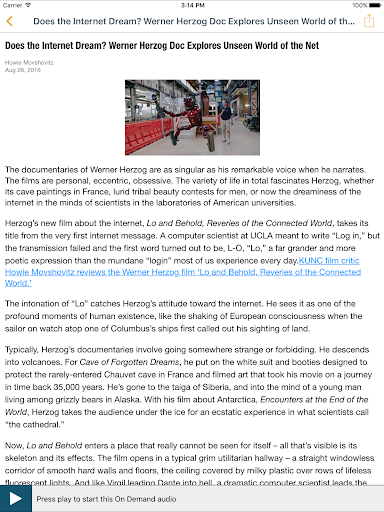 KUNC Public Radio App: The KUNC Public Radio App allows you to listen to KUNC live, pause and rewind the live audio, and view the program schedule for the KUNC streams all at once! You can explore On Demand content, search for stories, bookmark a story for later, and wake up to KUNC with the alarm clock! Live Streaming • DVR-like controls (pause, rewind, and fast forward). You can pause the live stream to have a conversation and pick up right where you left off! Or rewind to catch a comment you just missed! • Listen to live streams from KUNC even while traveling! Start the app and your favorite station starts playing – no clicks to start listening. • Integrated program schedules for every station. You can display up to three of your favorites at a time or flick once to see the schedules for all of your favorite stations. • One click stream switching – flip over to the program you noticed on another stream with a single click. • Listen to KUNC in the background while browsing the web or catching up on your emails! On Demand • Access public radio programs from multiple content providers (NPR, PRI, APM and KUNC) easily and quickly. • DVR-like controls. Pause, rewind and fast forward your program with ease. • When listening to national programs, individual story segments (when available) are listed so you can review and choose one or listen to the entire program. • Easy to access past programs. • The KUNC Public Radio App displays the web page associated with the program or story segment you are listening to On Demand so you can explore for more information. Radio Bookmarks • Save what you were listening to (Live or On Demand) so you can replay, follow-up, or share it later by simply clicking “Bookmark”. • Compatible with the popular Radio Bookmark device (www.radiobookmark.com). Search • The unique “Search Public Radio” feature finds stories or programs across hundreds of stations and web pages and makes it easy to play instantly. Additional features • Easily share stories and programs with family and friends via the “Share” button. • A built in Sleep Timer and Alarm Clock allows you to go to sleep and wake up to your favorite station. The KUNC Public Radio App is brought to you by the people at the KUNC and Listener-Interactive. We work to provide our valued listeners with great solutions to find what you want, when you want it, and where you want it. Please support KUNC Public Radio by becoming a member today! http://www.kunc.org http://www.listener-interactive.com