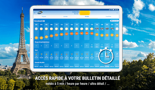 Enfin une application météo avec l\expertise de vrais météorologues. Retrouvez vos prévisions, les risques de pluie, des vidéos, un comparateur de météo, ... Une appli dont vous ne pourrez plus vous passer : on vous aura prévenu ! Pour des prévisions complètes et gratuites en France, en Outre-mer mais aussi en Europe et dans le Monde et des fonctionnalités innovantes et exclusives, suivez le guide… ;-) • Nouvelle rubrique \Toute l\actualité\ : mais késaco? C\est simple, vous avez désormais un accès rapide à tous les types de contenus éditoriaux, que ce soient les articles, les vidéos ou les images reporter. • Le streaming s\enrichit avec la mise à disposition de la VOD, sélectionnez et visionnez quand vous voulez uniquement les programmes qui vous intéressent ! • Nouveaux écrans de prévisions météo : nous vous proposons une nouvelle ergonomie afin de passer plus facilement du live, à la prévision horaire, jour et 15 jours. • Nos équipes R&D ont également fait évoluer notre modèle de prévisions afin d\en améliorer la qualité et la précision (comme sur le nouveau site web d\ailleurs) ! • Toujours plus de lieux avec l\apparition des villages et de nombreuses destinations • et enfin, bien-sûr, diverses optimisations de l\application • DÉCOUVREZ LE 1ER COMPARATEUR DE MÉTÉO EN FRANCE ! La Chaîne Météo vous facilite la vie : visualisez sur un seul écran les prévisions des 3 modèles météo les plus utilisés en France : Sources : METEO CONSULT Météo-France NOAA (USA) •PERSONNALISEZ VOTRE ECRAN D’ACCUEIL AVEC VOS CONTENUS PRÉFÉRÉS ! •CONSULTEZ VOS PRÉVISIONS EN DIRECT, AU QUART D’HEURE PUIS À L’HEURE PRÈS Casquette ou parapluie ? Ne vous posez plus la question grâce au Météo Live qui vous donne la probabilité de pluie dans le quart d\heure ! •PARTOUT OÙ VOUS ALLEZ, le widget vous permet de consulter directement la météo du lieu où vous vous trouvez. Il vous suffit d’autoriser la géolocalisation lorsque l’application est fermée pour continuer à bénéficier d’une information à jour sur votre téléphone. Le widget affiche maintenant 6 heures de prévision en plus de la météo en direct, et devient redimensionnable à souhaits. Que lui demander de plus ? •NAVIGUEZ DANS LE MONDE ENTIER GRÂCE À PLUSIEURS CENTAINES DE CARTES Carte nationales, régionales, départementales, territoires d’Outre-Mer et pays du monde entier •ACTUALITÉS ET VIDÉOS Retrouvez les articles La Chaîne Météo sur votre appli et suivez toute l’actu météo en direct. •NOTIFICATIONS •DEVENEZ REPORTER POUR LA CHAÎNE METEO Partagez, consultez et retrouvez simplement toutes les photos et contributions postées sur l’appli et le site La Chaîne Météo sur les lieux qui vous intéressent partout dans le monde. •PARTAGEZ VOS CONTENUS Partagez tous vos contenus avec vos proches par email, sur Facebook ou via Twitter. •RISQUE DE PLUIE Connaissez-vous la rubrique \Observations\ ? Avec cette mise à jour, découvrez ou redécouvrez cette rubrique désormais intitulée \Risques de pluie\. Nous avons travaillé sur la qualité des images diffusées et les performances du player, afin de vous proposer des observations plus fluides. Et maintenant, cette vidéo d\observations est enrichie d\images radar de \now casting\ permettant de visualiser les risques de précipitations sur les 90 prochaines minutes, du jamais vu ! La Chaîne Météo, la meilleure info météo.