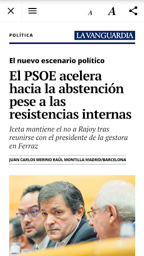 Bienvenido a La Vanguardia edición impresa, la app que te permite comprar y leer la réplica digital de La Vanguardia y sus suplementos tanto en castellano como en catalán. • La descarga de la aplicación es gratuita. Una vez instalada, puedes comprar un ejemplar de La Vanguardia o suscribirte a alguna de las opciones que ofrecemos: mensual, trimestral y anual. El coste de las suscripciones es de 9,90 euros (1 mes), 26,90 euros (1 trimestre) y 99,90 euros (1 año). • Los suscriptores de la edición impresa de La Vanguardia disponen de acceso gratuito a la aplicación.