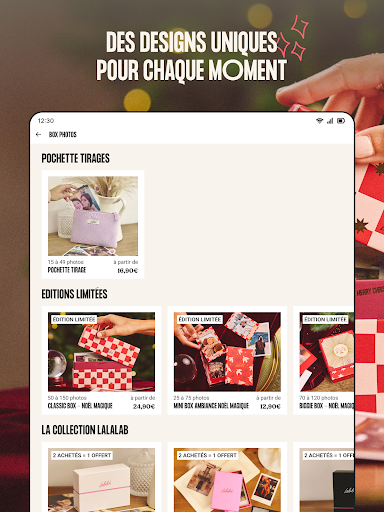 Lalalab c’est l\appli de référence pour imprimer vos photos depuis votre smartphone. En quelques clics, transformez vos souvenirs en tirages, livres photo, magnets, posters et bien plus encore – et recevez vos produits chez vous ! Pour vous, pour vos proches, c’est le cadeau idéal et unique pour faire plaisir. Déjà 13 millions d’utilisateurs conquis. ◆ CHOISISSEZ L’APPLI PHOTO LA MIEUX NOTÉE ◆ Simple et intuitive, l’application a permis l’envoi de millions de sourires à travers le monde. Tous nos produits sont imprimés exclusivement en Europe, pour une qualité optimale et une livraison rapide. Créez, commandez, et profitez de notre garantie 100% client heureux. ◆ IMMORTALISEZ VOS SOUVENIRS EN 5 MINUTES ◆ Créez vos produits photos en quelques minutes grâce à une interface hyper intuitive et facile d’utilisation. Il n’a jamais été aussi simple de faire un album photo ! Pour les moins pressés, personnalisez vos photos à l’envi avec nos filtres, couleur, fond, textes et emojis. ◆ TELLEMENT DE RAISONS D’UTILISER LALALAB ◆ - Décorez votre intérieur avec vos propres souvenirs - Faites plaisir à vos proches avec des cadeaux uniques et personnalisés - Immortalisez chaque précieux moment en famille pour les revoir à volonté - Revivez vos dernières vacances entre amis ! ◆ DES PRODUITS UNIQUES ◆ - TIRAGES PHOTO : Le produit que tout le monde adore ! 6 formats au choix, finition mat ou brillante, avec ou sans bordures blanches, vous trouverez facilement celui qui vous correspond. - ALBUMS PHOTO : De 26 à 100 photos, en paysage, carré, ou format mini, à redécouvrir au fil des pages. - BOX PHOTO : Rassemblez vos meilleurs moments dans nos adorables box photos, pouvant contenir jusqu’à 150 photos dans vos formats préférés : mini-vintage, vintage, ou classique. - MAGNETS : En forme de coeur, rond, carré ou mini vintage ! Votre frigo les attendait. - POSTERS : En mosaïque ou en grand format, avec ou sans cadre, exposez vos photos favorites - TOILES : Transformez vos photos préférées en tableau. Format 30x30 ou 50x50. - CADRES : une photo encadrée prête à orner vos murs avec un joli cadre, couleur noir ou bois naturel - CALENDRIER : organisez votre année en toute simplicité avec nos calendriers formats carré ou paysage ◆ COMMENT ÇA FONCTIONNE ? ◆ Lalalab propose différents formats de tirages photos, des livres photos, des posters, des magnets, des cartes postales et bien plus encore. Nous mettons un point d\honneur à concevoir des produits de qualité et fournir un service simple, rapide et du plus haut niveau : vos photos n\attendent que vous ! - Sélectionnez le produit de votre choix parmi nos tirages, albums, posters ou magnets… - Choisissez vos photos depuis votre smartphone, feed Instagram, Facebook, Google Photos ou Dropbox. - Personnalisez-les à l’infini en choisissant la couleur, le fond, la légende et plus encore - Toutes vos créations sont enregistrées dans vos projets pour les finaliser plus tard si vous le souhaitez - Passez votre commande en toute sérénité en payant via Paypal ou carte bancaire - Recevez votre commande emballée avec amour en peu de temps : chez vous ou en point relais. ◆ À PROPOS DE LALALAB ◆ Avec déjà plus de 2 Million de clients, Lalalab est devenue l\une des applications d\impression photo les plus téléchargées et les mieux notées d\Europe ! Créé en France en 2012, Lalalab fait partie depuis 2015 du groupe Exacompta-Clairefontaine et nous en sommes fiers ! Nos magnifiques articles sont produits exclusivement en Europe et plus précisément en France ou en Allemagne afin de vous permettre un délai de livraison le plus court possible, et surtout une qualité optimale. Rejoignez notre communauté de plus de 500 000 fans sur les réseaux sociaux. Suivez-nous sur Instagram, Facebook et Pinterest @lalalab Nous sommes facilement joignables, écrivez-nous à contact@lalalab.com, nous adorons vous lire.
