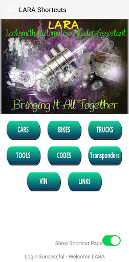 LARA The Locksmiths Automotive Rapid Assistant Unleash your automotive locksmithing prowess with our app—unlock the secrets to making keys for cars, trucks, and motorcycles, including transponder programming instructions. Join a vibrant community of expert key makers and programmers. LARA is NOT FREE it is SUBSCRIPTION ONLY There are 3 subscription models to choose from, 1 month, 6 months or 12 months. Now the Good Stuff!! LARA makes Locksmiths lives a lot easier by putting Key, Transponder, Remote & Lishi tool information right at your finger tips. As well as being able to decode the car lock and verify the bitting before you even remove your Lishi tool from the lock. Highlights ☆ User Feedback. LARA has a huge user feedback created database meaning you not only get my knowledge and experience but that of hundreds of locksmiths world wide. ☆ KeyDIY The most comprehensive Reference library available on your phone ☆ Decode with 1/2 cuts when you\r not sure of a depth. ☆ My Tools highlighter shows instantly which tools you currently have and what tools you need. ☆ Visual MACS validation as you decode your lock LARA will highlight impossible combinations. ☆ LARA Rekey now lets you choose wafers to swap around and returns a list of valid codes ☆ LARA Codes and FILL returns the valid bittings in a Cutting Tree to minimize key blank wastage and save time. ☆ On board transponder programming procedures. ☆ Remote programming procedures. ☆ Backup and Restore to your tools. Means tools lists can be Restored to all of your devices. LARA is firstly a notepad to record the decoded cuts of a car lock when decoded by a variety of tools. As you are decoding your lock with your Lishi 2 in 1 or Determinator tools or any other automotive reading tool, you can enter the cuts into LARA. LARA will suggest which wafers are in the door lock for you. Once finished in many cases you can run your bitting through LARA Codes Online whilst still standing at the vehicle door. There is quite a lot of information that LARA has to help you along your way to making keys to that vehicle, such as: ☆ Vehicle make and general model information ☆ Code series used ☆ Which wafers are likely to be in the door lock. ☆ Code rules which can help to ensure you are decoding each lock correctly. LARA is vehicle information I have gathered from personal experience or have verified to me. I do not just look up books and add random data, so you will not find every vehicle in the world. At the moment there is information on around 1400 vehicles. Again this is information I have been able to verify. Please note that whilst I have made every effort to ensure all data is correct there are bound to be errors and it is up to you to ensure you are using the correct equipment, keys, transponder, remotes and procedures.