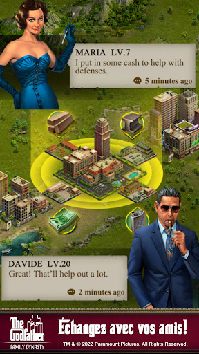 Pour la toute première fois, Le Parrain se dévoile de manière officielle dans un tout nouveau jeu mobile qui raconte une histoire d’argent, de pouvoir et de corruption. Don Vito Corleone vous a appelé à entrer le milieu criminel infâme de l’année 1945 et à devenir son lieutenant loyal. En tant que deuxième dans la hiérarchie après le Parrain, il VOUS incombe de faire les sales besognes des Corleones et de combattre pour l’honneur et le respect de la plus puissante famille de New York. Bâtir un héritage ne sera pas une simple tâche. Au fur et à mesure que votre fortune et votre influence grandissent, votre liste d’ennemis fervents grandit malheureusement de la même manière. Gardez un œil vigilant sur votre empire, car même un allié de confiance peut se retourner contre vous. Lorsque des hostilités se produisent, vous allez devoir utiliser force, intimidation et intelligence pour protéger vos biens ainsi que votre honneur. Recrutez vos Capos et entraînez-les bien, car la vengeance est la vôtre. Chaque boss digne de ce nom a besoin d’un manoir. Une fois que vous aurez pris le contrôle de votre domaine, vous devez trouver des moyens lucratifs d’améliorer vos ressources et d’augmenter votre santé. Le sang est un prix cher à payer, mais si cela est nécessaire, soyez prêt à mener une guerre sanglante. N’oubliez pas de garder vos amis près de soi, mais vos ennemis encore plus près. On ne sait jamais si quelqu’un utilisera vos informations pour ses propres intérêts. Pouvez-vous garder votre loyauté envers le Parrain ? Une fois que vous avez prêté allégeance au Don, il n’y a pas de retour en arrière. Rappelez-vous, rien n’est personnel… c’est une affaire strictement professionnelle. Buona Fortuna CARACTÉRISTIQUES PRINCIPALES Bâtissez un palais digne d’un don : apprenez à gérer votre domaine luxueux sous la supervision directe du Parrain Vito Corleone lui-même. Mobilisez votre bande : gagnez de la protection en recrutant des Capos et des soldats pour « gérer » tout malentendu et épier les familles rivales peu dignes de confiance. Nouez des amitiés puissantes : en aidant vos alliés, les faveurs vous seront retournées. Après tout, l’homme le plus puissant est celui ayant les amis les plus puissants. Délaissez le revolver. Prenez les cannoli : menez à bien des tâches et vous serez généreusement récompensé. Mettez les bâtiments et l’équipement à niveau tout en améliorant vos récompenses et vos armes. Rendez les investissements profitables et truquez les comptes. Préparez-vous au combat : défendez votre territoire et déclarez la guerre aux familles rivales pour mettre la main sur leurs propriétés et acquérir une large fortune. Devenez une légende : sécurisez votre place comme un homme « autodidacte » dans la famille Corleone.