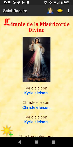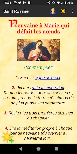 Le Rosaire qui sélectionne automatiquement les mystères du jour est enrichi de belles illustrations qui accompagnent la prière. En outre, il y a aussi les principales prières catholiques que vous pouvez essayer de mettre à jour. Personnellement, je préfère prier le Rosaire avec mon chapelet dans mes mains, mais l\ajout d\images aux différents mystères peut vous aider dans la prière et la méditation des mystères eux-mêmes. Et si, ce faisant, je peux utiliser un smartphone ou une tablette ... Pourquoi pas? J\ai traduit l\application en anglais, français, italien, espagnol, etc. Si vous remarquez des fautes d\orthographe ou si vous avez des suggestions ou des conseils, s\il vous plaît les signaler. Cette application est (et sera TOUJOURS) gratuit: \Vous avez reçu gratuitement, donnez gratuitement\ (Matthieu 10:8). Pour ceux qui ont la version Android 6 ou ultérieur, vous devez aller sur Paramètres, puis APP, sélectionnez l\App ROSARIO, allez PERMIS, et permettre le dépôt. Si vous avez des problèmes avec l\installation, essayez de supprimer temporairement la carte SD. Si vous voulez m\envoyer une prière, une neuvaine, une dévotion, etc. vous pouvez le faire ici: https://elefantsoftware.weebly.com/rosario.html ____________________ 1.1.8 ★ Correction de quelques bugs ★ Les 15 Oraisons de Sainte Brigitte 1.1.5 ★ Ajout d\un troisième serveur pour télécharger les fichiers audio ★ autres améliorations et corrections mineures 1.1.4 ★ Ajout chapelet complet sélectionnable ★ Amélioration de la \Aller à...\ ★ changé l\image de la croix 1.1.3 ★ Ajout de la commande \Aller à...\ dans le menu ★ corrigé le redémarrage incorrect de la récitation audio à la suite d\un appel téléphonique qui a eu lieu sur certains appareils ★ + Si quaeris miracula 1.1.1 ★ Ajouté second serveur pour les fichiers audio ★ Acte de contrition ★ Action de grâce ★ A l’ange gardien ★ A la Vierge Marie ★ Neuvaine à Marie qui défait les nœuds ★ Oblation de soi ★ Offrandes d’œuvres ★ Recommandation de l’âme ★ autres corrections et améliorations 1.1.0 ★ Ajout de la possibilité de réciter les Litanies de Lorette en latin ★ TAP a été corrigé sur l\invocation de Fatima ★ autres changements 1.99 ★ Ajout de \prières préférées\ ★ ajoute l\invocation «Ô Sang et Eau ...\ à la fin du chapelet de la Divine Miséricorde ★ bugs corrigés 1.98 ★ Ajout de la langue LATINE ★ correction de quelques erreurs 1.97 ★ Améliorations 1.96 ★ Ajouté audio en portugais ★ améliorations 1.95 ★ Correction de quelques bugs 1.93 ★ Ajout de la version audio en FRANÇAIS! ★ Correction de quelques bugs 1.90 ★ Maintenant, vous pouvez aussi réciter le chapelet de la Divine Miséricorde! ★ forme irrégulière du Rosaire 1.86 ★ Correction d\un problème qui s\est écrasé la demande sur certains appareils ★ autres changements importants ★ Ajout de la langue FRANÇAISE ★ Ajout de la langue MALAY 1.81 ★ Correction d\un problème qui s\est écrasé la demande sur certains appareils ★ autres changements importants