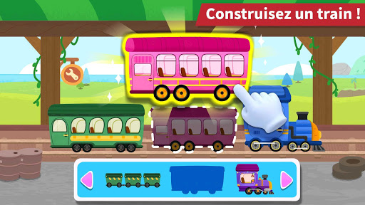 Bonjour, conducteur de train ! Êtes-vous prêt à conduire votre train avec Bébé Panda et à commencer votre aventure ? Donnez des klaxons et partons ! Construisez un train Choisissez une locomotive rouge et connectez les wagons argentés pour les passagers. N\oubliez pas de connecter les wagons de marchandises marron. Oh là là ! Votre train a l\air cool. Embarquez pour une aventure dans votre propre train ! Transportez des passagers Vérifiez les billets de vos passagers et aidez-les à retirer les objets interdits de leurs valises. Emportez des passagers dans votre train à travers les prairies et commencez une aventure passionnante ! Transportez des marchandises Vous êtes arrivé à l\entrepôt de marchandises ! Contrôlez la grue et utilisez le crochet géant pour charger les marchandises dans le train et les emmener à leurs destinations. Enlevez les obstacles Oh ! Il y a une coupure sur la voie ! Une barrière bloque le train ! Des moutons sont sur les rails... Pensez à la manière dont vous pouvez surmonter ces défis et amener les passagers et les marchandises à leurs destinations ! Félicitations ! Vous avez terminé toutes vos tâches. Bébé Panda a un nouveau morceau de train pour vous ! Regardez-le maintenant ! Caractéristiques : - 18 types de morceaux de train. - 4 thèmes de carte : Prairies, Désert, Ville et Tunnels. - Sachez quoi prendre en compte lors de la conduite d\un train et découvrez quels éléments sont interdits ! - Amusez-vous bien en conduisant le train ! À propos de BabyBus ————— Chez BabyBus, nous nous consacrons à stimuler la créativité, l\imagination et la curiosité des enfants, et nous nous efforçons de concevoir nos produits à travers les yeux des enfants afin de les aider à explorer le monde par eux-mêmes. BabyBus propose une grande variété de produits, vidéos et autres contenus éducatifs à plus de 400 millions de fans âgés de 0 à 8 ans à travers le monde ! Nous avons publié plus de 200 applications éducatives pour enfants, plus de 2 500 épisodes de comptines et des animations de différents thèmes couvrant la santé, la langue, la société, la science, l\art et d\autres domaines. ————— E-mail pour nous contacter : ser@babybus.com Visitez notre site Web : http://www.babybus.com