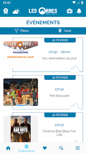 LES ORRES, LA STATION DE VOS VACANCES ! Les Orres, la station de vos vacances dans les Hautes-Alpes, vous offre une application innovante. RECHERCHEZ, TROUVEZ & PROFITEZ d\un maximum de services utiles hiver comme été comme l\ouverture des pistes de ski mais aussi du bike park et des remontées mécaniques en temps réel, la météo et l’enneigement de la station, l\état des routes dès les frontières du département, les aires de chaînage et bien entendu les webcams de la station. Ensuite pour vous aider à circuler dans la station, vous trouverez les horaires des navettes, le plan interactif de la commune, le plan des pistes, les parkings géolocalisés et bien entendu tous les services, commerces, activités et événements à ne pas manquer ! Vous pourrez également enregistrer vos événements favoris et recevoir nos dernières alertes !