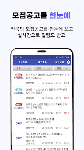 ■ 내 집 마련의 첫걸음! 임대 분양 정보를 여기서 한눈에 확인하고 준비하세요. ■ LH, SH 국민임대 / 행복주택/ 공공임대 /영구임대 / 분양주택 / 신혼희망타운 등 다양한 형태의 임대아파트의 정보를 제공하고 있습니다. ■ 실시간 알람을 통해 새로운 공고를 빠짐없이 체크하세요. 새로운 공고가 올라오면 실시간으로 알려드립니다. 원하는 지역의 공고를 빠짐없이 확인해보세요. ■ LH, SH 임대 분양과 관련한 다양한 정보제공 - 공고 관련 정보 - 공고문 제공 - 실시간 공고 알람 - 접수 관련 정보 - 임대아파트 단지 및 주변 지도 정보 - 지인과 정보 공유 ■ LH, SH 임대주택 여기서 시작하세요 ■ 자료출처 - LH 주택 공사 오류신고 및 문의 - weareappcorp@gmail.com