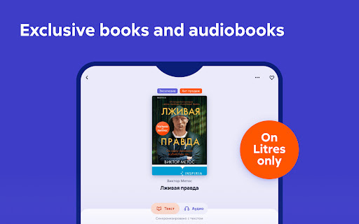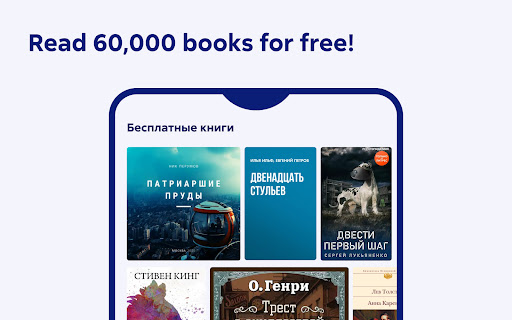 • Books in Russian — reading and learning the language is a snap. All the greatest works of Russian literature in one App • All the latest international bestsellers translated to Russian • The #1 book reading app in the GooglePlay • Over 10 million of happy customers • The largest catalog — over 1,000,000 ebooks in Russian Welcome to Read! It’s a great way to read your favorite books on your SmartPhone or Tablet. For you: · Access to 1,000,000 books in your favorite genres: fantasy, science fiction, business, Russian literature, DIY, romance, mystery, action, business, self-improvement, psychology, and much more. · The first 20% of any book is free. What if you don’t like it? Read and choose which books to get. · The hottest new releases. Be the first! Most new releases appear in the LitRes catalog at the same time the paper book is released. · Over 32,000 free books — read to your heart\s content! · Enter regularly-scheduled drawings and win valuable prizes for registered LitRes users. Special features: · Your books are always with you — all the books you have purchased are available to you on all your devices and the LitRes website (as long as you use the same account) · Start reading on your SmartPhone, pick up where you left off on your Tablet! All your bookmarks will be synced across all your devices and the LitRes online reader (as long as you use the same account) · The convenient search function lets you search for books based on various criteria. Do you only know the author\s last name? Or are you trying to find a new fantasy novel to read? Our search function can help! · You can sign up in a single tap using your social network account To select a book: · Read large free excerpts before you buy the book (up to 20% of the book) · Read book reviews by other users or write your own · Study the author\s official web page with biographies, critiques, and easy access to series of books While reading, you can: · add the pages you need to your bookmarks · see how many pages you’ve read and how many you have left · fine-tune your reading experience for maximum comfort — adjust book background, screen brightness, and font size · access you entire library in offline mode even when roaming or outside a network area (you will have to download the books beforehand) · enable nighttime reading mode with a single button If you like a book, you can: · buy it with a single tap or put it in your cart and buy it later from your current device or a different one · share information about the book with your friends on a social network Note: the LitRes app may collect anonymous usage statistics. Should you have questions, suggestions or tech.problems - let us know through android@litres.ru. (с) 2011-2022 LitRes