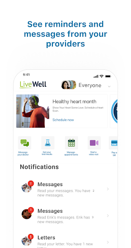 Get all your health info in one convenient place. With our new LiveWell with Advocate Aurora Health app, you can manage your health and wellness – as well as everyone who counts on you. With LiveWell, you can: • Start a video visit or e-visit to get a fast diagnosis and treatment plan • Manage care for yourself and everyone who counts on you all in one place • Schedule appointments and get medications for everyone who depends on you • Message your providers • Get bill notifications • Take health quizzes • Get the latest health and wellness insights • Live mindfully with guided meditation exercises • Upload health and fitness data, including data from the Apple Health app, when enrolled in self-tracking programs