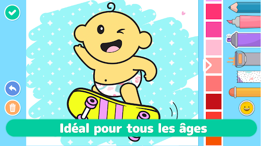 Une tonne de différentes images amusantes de bébés. Ces activités divertiront votre enfant tout en développant sa créativité, sa motricité fine et sa coordination œil-main. Notre jeu de coloriage est idéal pour les filles et les garçons de tous âges et intérêts. Jeu de dessin avec différents outils : Crayon Marqueur Vaporiser Pot de peinture ★ Textures et motifs ★ Gomme Autocollants amusants Le jeu est conçu pour aider vos enfants à créer facilement de beaux dessins. Vous pouvez toujours corriger les erreurs avec le bouton \Annuler\. DÉTAIL DES FONCTIONS : - Interface simple, intuitive et adaptée aux enfants. - Différents scénarios spécialement conçus pour eux. - Graphiques couleur de haute qualité. - Multilingue en anglais, espagnol, portugais, français et arabe. - Mélodies et sons de fond doux. - Et last but not least : tous les jeux sont ENTIÈREMENT GRATUITS. Vous avez aimé Colorier les bébés ? ☚☚☚☚ Merci de prendre quelques minutes pour nous laisser votre commentaire sur google play. De cette façon, vous nous aiderez à nous améliorer et à continuer à créer des jeux GRATUITS pour vos enfants.