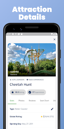 Discover the world\s largest theme park database for theme park fans, coaster nerds, haunt fans, and thrill seekers! LogRide is a mobile companion for tracking your park experiences and gateway into park history, attraction stats, and loads of other amazing features. Which parks have you visited? What attractions have you ridden? How many times? With over 63,000 attractions and 4,000 parks, you can start tracking your stats and expanding your theme park knowledge. LogRide includes full parks from Disney, Universal, Cedar Fair, Six Flags, SeaWorld, Parques Reunidos, Merlin Entertainment, Chimelong Group, and thousands more! Get spooky with LogRide\s extensive haunt section! Track your favorite seasonal and year-round haunts with mazes, houses, and scarezones! Thanks to amazing theme park fans, LogRide is always growing. Join your fellow fans and submit parks, attractions, stats, and photos from your own theme park experiences. *FEATURES* -Global Map- Discover parks and haunts using the LogRide map. - Experience Tally - How many times have you ridden an attraction? 10? 10,000?? -Park Time Line-* Time line of each park\s attraction history. -Coaster-Only Mode-* A special mode for all our LogRide coaster enthusiasts. - Attraction Stats - Height, speed, length, history, photos, etc... - Wait Times - View accurate wait time reports for over 50 of the world\s most popular theme parks! -Lists- What\s your top 10? Create custom lists for your favorite attractions. - Defunct Attractions - Explore the history behind each park. LogRide keeps track of attractions no longer in operation. - Haunts and Midways - Your favorite haunts and traveling showmen are here too! - Check In - Don’t forget to check in each time you visit a park. LogRide helps track how many times you’ve visited a park. - Personal Stats - Discover your most ridden attractions, coaster count, dark ride count, flat ride count. and much more! *Available with LogRide Pro subscription