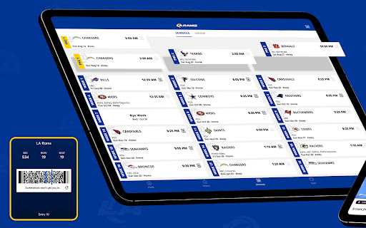 Welcome to the Los Angeles Rams mobile app! Our app provides you with 24/7/365 coverage of the team anytime, anywhere on your mobile device. We’re bringing you exclusive, up to the minute, behind-the-scenes access to all things Rams! Get ready for kickoff at SoFi Stadium with the ability to access and manage your tickets in one convenient location. Features Include: - Push Notifications: Receive breaking news alerts straight from the source. Set your preferences to receive the alerts you care about most - Tickets: Manage your tickets in the app: Buy, sell, transfer, and donate your tickets with only a few taps - Stories & Clips: Access behind-the-scenes and real-time game updates with social-style app stories and clips - News: Get to know our players off the field, receive exclusive team information, breaking news, analysis, roster updates & more - Galleries: Game-action galleries, practices, off the field moments, cheerleaders, and more - Stats: Real-time statistics and scores from the official NFL stat engine - Team Information: Access current standings, depth chart, and view the game schedule - #RamsHouse Fans: Download wallpapers and be the first to know about promotions and events Follow us on social media or visit therams.com for more. Twitter: @RamsNFL Instagram: @ rams YouTube: larams Facebook: Los Angeles Rams Tik Tok: @ rams