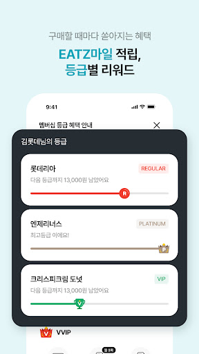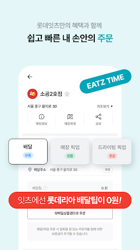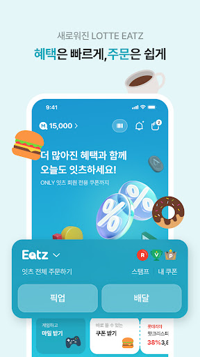 하루의 모든 순간을 롯데잇츠와 함께! - 롯데리아, 엔제리너스, 크리스피 크림, 플레:이팅 ■ 언제 어디서나 주문 할 수 있는 \EATZ 주문 서비스\ - 원하는 배달지로 배달 받을 수 있는 배달 서비스, - 기다림없이 매장에서 바로 픽업 할 수 있는 픽업 서비스 - 매장 테이블에서 바로 주문 가능한 테이블오더 서비스 ■ 롯데잇츠만의 스탬프, CHIP! - 롯데잇츠의 브랜드 구분없이 적립되는 \잇츠 CHIP\ - 브랜드별 이벤트 상품 주문 시 적립되는 \브랜드 CHIP\ - 적립된 CHIP으로 다양한 혜택까지 일석이조! ■ 다양한 상품을 할인된 가격으로 이용 가능한 쿠폰 서비스 - 무료로 다운받아 이용할 수 있는 할인쿠폰 - 할인된 가격으로 구매하여 이용할 수 있는 구매쿠폰 - 친구에게 쿠폰을 선물하여 마음을 전하세요. ■ 매장 방문없이 온라인으로 충전 가능한 롯데잇츠 카드! - 롯데잇츠에서 사용할 수 있는 카드를 관리하고 편리하게 바코드로 결제할 수 있습니다. ■ 복잡한 결제없이 쉽고 간편하게 결제가 가능한 \잇츠 페이\ - 복잡한 결제절차 없이 한번 등록만으로 쉽고 간편하게 결제할 수 있는 \잇츠 페이\ ※ 사용 접근권한 안내 [선택적 접근권한] - 카메라 : 영수증 적립, QR인식, 바코드 스캔 - 사진 : 후기 작성, 고객의 소리 작성 - 블루투스 : 방문 매장 식별 - 위치정보 : 가까운 매장 찾기, 배달지 주소 설정, 드라이빙 픽업 위치 확인 - 연락처 : EATZ마일 선물, 쿠폰 선물, EATZ카드 선물 - 전화 : 매장전화 휴대폰번호 수집(앱푸시, 문자메세지) - 알림 : 앱 혜택 및 이벤트 알림 * 선택적 접근권한은 기능 사용 시 허용이 필요하며 비 허용시에도 해당 기능 외 서비스 이용이 가능합니다. * 접근 권한 변경 방법 휴대폰 설정 > 롯데잇츠 * 롯데잇츠 고객센터 - 배달/오더 문의 : (롯데리아) 1600-9999, (엔제리너스,크리스피크림도넛,플레:이팅) 1600-0552 - 쿠폰 문의(기프티엘) : 1644-4276 - 잇츠카드/CHIP 문의 : 080-737-1000 앱 이용 관련 불편사항, 오류 신고 : lotteeatz@lotte.net