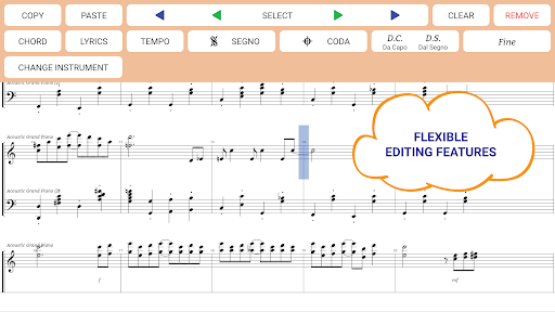 Maestro est la nouvelle génération d\applications de composition musicale Bonjour Maestro! Nous espérons que cela pourra être l\application idéale pour les compositeurs de musique, les auteurs-compositeurs, les étudiants en musique et tous ceux qui souhaitent écrire de la musique facilement. Composez de la musique rapidement et facilement comme un maestro! Écrire et apprendre des notations musicales - Notes, accords et liaisons - Silences et pauses multi-mesures - Barres de mesures - Signes de répétitions, Da Capo, Dal Segno, Segno, Coda, Fin et Fins différentes - Articulations et expressions, Staccato, Staccatissimo, Accent, Tenuto, Fermata, Trill, Tremolo et plus - Différentes appogiatures et notes, points, doubles points, attachées, liaisons, doublons, triplées, quintuplées - Alterations accidentelles et quart de ton - Dynamique - Appliquer plus ou moins l\octave: 8va, 8vb, 15ma, 15mb, 22va, 22vb - Appliquer la transposition - Changer de Clef: aigus, basse, alto, soprano, mezzo-soprano, ténor, baryton, percussions et percussions mono - Changer de tempo - Changer de chiffrage - Changer d\armature - Écrire des paroles, des textes d\accord et des doigtés Prend en charge plusieurs instruments - Jouez votre musique avec plus de 100 instruments - Piano, Orgue, Violon, Violoncelle et autres cordes, guitare, Cuivres, Anches, Cornemuses, Batterie et Percussions - Il y a aussi des effets sonores amusants tels que: Chants d\oiseaux, Hélicoptère, Coup de feu, Bruit de de vagues, Sonnerie de téléphone, Cri et autres Nombre illimité de portées - Écrire de la musique orchestrale - Afficher / masquer les portées pour gérer plusieurs portées ou imprimer les pièces individuellement Durée illimitée de la musique - Pas de limite dans le nombre de mesures et la durée de la musique Écoutez votre composition - Jouez votre musique instantanément - Définissez la section de lecture et répétez les parties que vous souhaitez écouter Exporter vers des fichiers image et imprimer votre partition - Zoom avant et arrière pour écrire plus ou moins de notes sur une ligne - Enregistrer en tant que fichier image tel que vous le voyez à l\écran - Enregistrement aux formats PNG et PDF - Modification de l\orientation de la page Exporter vers un fichier audio - Envoyez votre musique à des amis - Définissez votre composition comme sonnerie - Sauvegarde aux formats MIDI et MP3 Voulez-vous devenir un maestro populaire? Découvrez notre salle de concert - Présentez votre musique à la salle de concert et voyez si d\autres l\aiment - La salle de concert est l\endroit où vous pouvez poster votre musique ou écouter et voir le travail d\un autre maestro - C’est une autre façon amusante d’apprendre à écrire les différentes notations musicales et symboles - Obtenez de nouvelles inspirations! Prend en charge les tablettes et toutes les tailles d\appareils Nous apprécions vos commentaires et suggestions! - Nous sommes très désireux d\améliorer Maestro - Vous êtes un artiste qui crée de la musique avec Maestro, nous sommes un artiste numérique qui crée ce Maestro Nous ferons de notre mieux pour continuer à améliorer Maestro Merci info@futuresculptor.com ----- Write and Learn Musical Notations - Notes, Chorded Notes and Layered Notes - Rests and Multi-Measure Rest - Measure Bar Lines - Repeat Signs, Da Capo, Dal Segno, Segno, Coda, Fine and Different Endings - Staccato, Staccatissimo, Accent, Tenuto, Fermata, Trill, Tremolo, Mordent and more Articulations - Dot, Double Dot, Beam, Tie, Slur, Duplets, Triplets, Quintuplets, Grace Note and more - Accidentals and Quarter Tones - Dynamics - Apply Octave Up and Down: 8va, 8vb, 15ma, 15mb, 22va, 22vb - Apply Transposition - Change Clef: Treble, Bass, Alto, Soprano, Mezzo-Soprano, Tenor, Baritone, Drums and Mono Tone Percussion - Change Tempo - Change Time Signature - Change Key Signature - Write Lyrics, Chord Texts