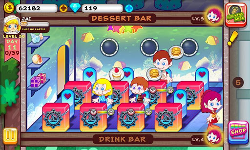 Relâché, amusant, irrésistible. Profitez le jeu de restaurant fictif le plus enrichit, établissez votre propre empire de restauration populaire ! « Magnat culinaire » est un jeu de restauration fictif qui vous apporte une expérience original culinaire. Ce jeu combine l’art culinaire de folie et le management classique de restauration. Apprendre les nouvelles recettes en prenant les denrées alimentaires variées pour cusiner des plats fabuleux afin de satisfaire la demande des clients ! la pâté à la viande rebondit, les frites et les chicken wings sautent dans le poêle, couper les légumes et viande soigneusement, frit, cuit, coupe, frottement, remue et décoration de votre plat, tout cela se fait par une simple geste sur le clavier ! Gérez le temps imparti et perfectionnez le technique culinaire afin de gagner plus de pourboire. Dévérouillez plus de niveau par l’expansion de votre société afin de gérez les différents restaurants de thèmes, faites qualifier le personnel pour recevoir plus de clients souriants, établissez votre propre restaurant fantastique et libérez l’empire du fond de votre coeur. Caractéristiques du jeu : - 7 étages correspondent 7 type de restauration : Restaurant de fast food, restaurant français, restaurant Italien, Café, pâtisserie, restaurant japonais et restaurant Chinois. - Apprenez 40 recettes de cuisines et achetez 40 denrées alimentaires - Une grande cuisine fonctionnelle qui s’est basé sur 10 ustensiles de cuisine - Faites la mise à niveau des serveurs permet d’avoir une mode d’auto-gestion et d’avoir plus de clientèle - Challengez le critique gastronomique et inspecteur en hygiène publique - Une scène fantastique et une image culinaire intéressante, une musique de fond relâchée et une réelle musique de cuisine --- Cooking Tycoon is #1 extraordinary restaurant stimulation game that offers a perfect blend of kitchen cooking with restaurant building. Cooking Tycoon delivers fresh new cooking experience alive with smiling customers, hundreds delicious ingredients and tasty dishes! Running a restaurant is loads of fun in this addicting game that is optimized for playing on-the-go. You’ll learn to take orders, grill patties, add toppings, and serve everything from burgers and fries to sushi and desserts to all of your crazy customers. Collect tips to make money to unlock new dishes and build more types of floors to attract more customers. Escape to the world of cooking, friends and fun now! Game Features: - 7 unique gourmet restaurants: Fast Food, French, Italian, Drink, Dessert, Japanese and Chinese - Multitask between serving, grilling and stacking - More than 40 dishes to cook using hundreds ingredients - Stunning graphics and authentic sound effects