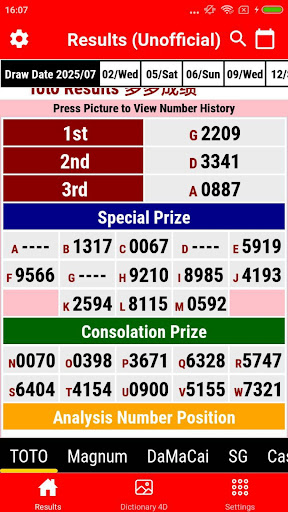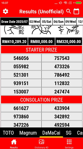 Live 4D Results MY – Fast & Clean Results Viewer (Unofficial) Quickly check the latest 4D results in Malaysia, Singapore, and Cambodia with a clean interface designed for fast access. Stay updated with real-time draw results for Magnum, Toto, and other popular operators — all from one place. Key Highlights: Instant updates for Magnum, Toto, Da Ma Cai & others Simple layout for quick result viewing Tools: Lucky number generator, dictionary & result history Save your favorite numbers for easy reference Supports draw schedules & regional variations Unofficial & Independent This app is not associated with any lottery organization and does not offer gambling services. Results are aggregated from publicly available sources and are for reference only. Source references: Malaysia: magnum4d.my, sportstoto.com.my, damacai.com.my Singapore: singaporepools.com.sg Cambodia: gdlotto.com, 9lotto.com Always verify your results through official websites. This app is intended solely for informational use.