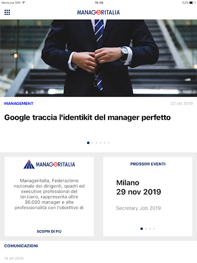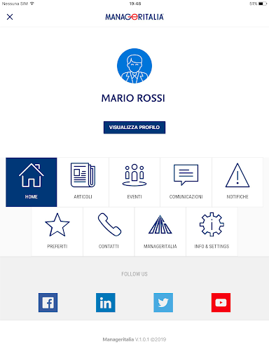 MANAGERITALIA Lavoro Nice to Mit You è l’app ufficiale di Manageritalia, la Federazione nazionale che rappresenta 36.000 manager tra dirigenti, quadri e executive professional del commercio, trasporti, turismo, servizi, terziario avanzato. Nice to Mit You è il nuovo mezzo per comunicare con i manager associati, ma anche con attori dell’economia e giovani, offrire servizi innovativi, informazioni e strumenti utili e puntuali per il lavoro.