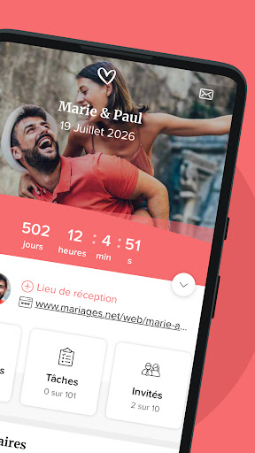 Seulement jusqu\au 3 mars ! Surprise ! Le tirage au sort de 25 000 € pour votre mariage est de retour ! Gagnez 25 000 € à dépenser auprès des prestataires disponibles sur Mariages.net (que vous les ayez déjà, ou non ! Plongez dans l\univers magique de Mariages.net, l\application qui rend la planification de votre mariage aussi excitante que le grand jour lui-même ! Avec Mariages.net, chaque détail compte et chaque instant est précieux. Que vous imaginiez une cérémonie intime au coucher du soleil ou une fête somptueuse sous les étoiles, notre application vous accompagne à chaque étape, vous offrant des outils pratiques et une inspiration infinie pour créer le mariage de vos rêves. Fonctionnalités principales : - Planificateur Personnalisé : Créez un plan de mariage sur mesure qui reflète votre style et votre personnalité. - Liste de Tâches : Suivez vos tâches à accomplir et ne manquez aucun détail grâce à notre liste de contrôle complète. - Gestion du Budget : Restez sur la bonne voie financière avec notre outil de suivi des dépenses et des budgets. - Inspiration Sans Fin : Explorez des idées de décoration, des tenues de mariage tendance et bien plus encore pour trouver l\inspiration parfaite. Organisateur de Prestataires : Trouvez les meilleurs prestataires de mariage et gérez facilement vos contrats et rendez-vous. - Partagez avec vos Proches : Invitez vos amis et votre famille à contribuer à la planification et partagez des moments inoubliables tout au long du processus. Peu importe le type de mariage que vous imaginez, Mariages.net est là pour vous aider à le réaliser. Téléchargez l\application dès aujourd\hui et commencez à planifier le jour le plus important de votre vie avec facilité et élégance. Félicitations pour vos fiançailles !
