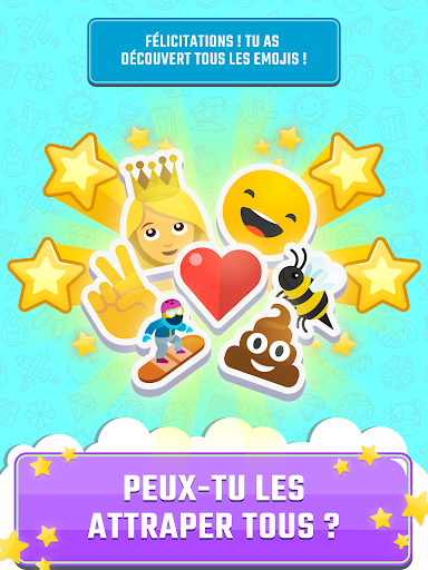 ATTRAPE-LES TOUS ! Il existe autant d’emojis que d’émotions humaines ! Utilise ta créativité pour les accorder en paires, en découvrir de nouveaux, et collectionner toutes tes trouvailles jusqu’à devenir le plus grand maître des emojis de l’univers ! Quels étonnants mystères de l’âme découvriras-tu en mélangeant un smiley joyeux avec un qui fait la tronche ? Quels sentiments cachés peuvent résultent de la rencontre entre des yeux dubitatif et un pouce tourné vers le haut ? Ta curiosité doit être plus vive qu’un emoji enthousiaste ! CE QUI T’ATTEND • MÉLANGE les emojis pour en créer de nouveaux avec un gameplay simple • DÉCOUVRE plus de 200 emojis ! • TESTE ta sagacité avec des puzzles faciles à apprendre mais difficile à maîtriser • EXPLORE les profondeurs de l’âme humaine (ou du clavier à emojis du moins ! Un monde de possibilités infinies s’ouvre à toi ! Seras-tu à la hauteur ? Veuillez noter! Ce jeu se joue gratuitement mais contient certains articles pouvant être achetés avec de l\argent réel. Certaines fonctionnalités et suppléments mentionnés dans la description peuvent devoir être achetés avec de l\argent réel.