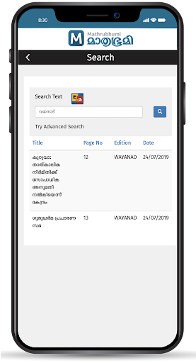 The Mathrubhumi E-paper is a replica of our traditional printed publication with all the stories, photos, and artwork. You can read your favourite newspaper anytime and anywhere. For those of you who like to immerse yourself in the long reads, enjoy the experience of the newspaper package or get the big, exclusive interviews before anyone else - the E-paper can be delivered to mobile, laptop or tablet. The app or desktop site allows you to increase font size or read in article view, and navigate quickly between sections. It’s easier, cheaper and hassle-free. The easy-to-use interface lets you flip leisurely through the pages like a newspaper, or conduct custom searches and share articles.
