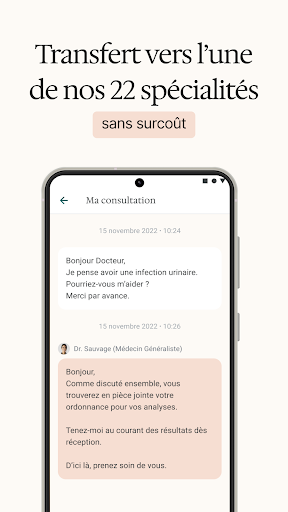 Sur MédecinDirect, consultez rapidement des médecins généralistes et spécialistes en ligne 24H/24 et 7 jours sur 7 par écrit ou en vidéo. Pionnier de la téléconsultation en France, MédecinDirect prend soin de votre santé physique et mentale grâce à un modèle de prise en charge unique mis au point depuis 10 ans, basé sur la collaboration en continu d’une équipe de soignants pluridisciplinaire, disponible 24/7, qui prend en charge et vous accompagne jusqu’à la résolution de votre problème de santé. MédecinDirect c’est : Des consultations avec ou sans rendez-vous en vidéo ou par écrit 24H/24 & 7J/7 Des conseils, avis ou diagnostics médicaux en ligne Plus de 35 spécialités médicales disponibles Des téléconsultations prises en charge par l’Assurance Maladie et sans avances de frais pour 16 millions de français grâce à nos partenariats Comment ça marche? Téléchargez notre application MédecinDirect Créez votre compte patient ou connectez-vous avec votre compte existant Décrivez vos symptômes à l’écrit sur notre messagerie sécurisée. Joignez-y tout document (photos, bilans sanguins, ...). Choisissez votre téléconsultation à l\écrit ou en vidéo. Notre équipe médicale vous met en relation avec le médecin le plus adapté à votre situation. Recevez un avis médical, un diagnostic, et si nécessaire, une ordonnance électronique valable en pharmacie. Pour quels motifs peut-on consulter un médecin en ligne sur MédecinDirect ? Médecine Générale : Douleur chronique, Allergies, Diarrhée, Fatigue, Fièvre, Rhume, problèmes digestifs, troubles du sommeil, renouvellement d’ordonnances, infections urinaires... Pédiatrie : Bronchiolite, Fièvre, Gatro-entérite, Varicelle, Bronchite, Otite... Dermatologie : Éruption cutanée, Acné, Bouton de fièvre, Eczéma, Psoriasis... Gynécologie : Contraception, Cycle menstruel, Douleurs, Grossesse... ORL :Angine, Congestion, Laryngite, Otite Sinusite, Rhume... Gastro-entérologie : Brûlure d\estomac, Constipation, Gastro, Indigestion, Turista... Psychologie : Anxiété, Burn-out, Dépression, Phobie, Stress... Sexologie: IST, Éjaculation précoce, Baisse de libido, Troubles, Douleurs.. Quelles sont les spécialités médicales disponibles sur MédecinDirect ? Il y a 27 spécialités chez MédecinDirect : Addictologie, Cardiologie, Chirurgien-dentiste, dermatologie, endocrinologie, diabétologie, gastro-entérologie, hépatologie, gynécologie, médecine générale, médecine interne, neurologie, ophtalmologie, ORL/Chirurgie maxillo-faciale, pédiatrie, pneumologie, psychiatrie, radiologie, oncologie/radiothérapie, rhumatologie, sexologie, médecine et biologie du sport ; Diététique ; Psychologie ; Homéopathie ; IDE ; Activité physique adaptée. Qui sont les médecins qui vous répondent? Les professionnels de santé qui vous reçoivent à distance exercent aussi en cabinet ou en centre de santé. Ces derniers sont tous inscrits au CNOM : c\est une obligation pour n\importe quel médecin qui souhaite exercer légalement en France. Chez MédecinDirect, chaque médecin est formé à la télémédecine par notre Direction Médicale. Vous avez une question ? N’hésitez pas à nous contacter sur contact@medecindirect.fr