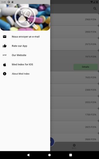Med Index est une application mobile qui liste tous les médicaments disponibles au Cameroun avec leurs prix locaux ainsi que quelques caractéristiques de base( forme, dosage...) . Med index a été développée par des professionnels de la santé pour les professionnels de la santé afin de les aider quotidiennement lors de leurs prescriptions. Les prix des médicaments sont donnés à titre indicatif. Ils peuvent varier selon la ville et/ou la pharmacie, mais cette variation n\excédant généralement pas 10%. Pour le grand public, l\équipe de Med Index ne prend aucune responsabilité en cas d\utilisation des informations de l\application sans l\avis indispensable et obligatoire de votre médecin.