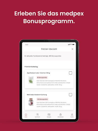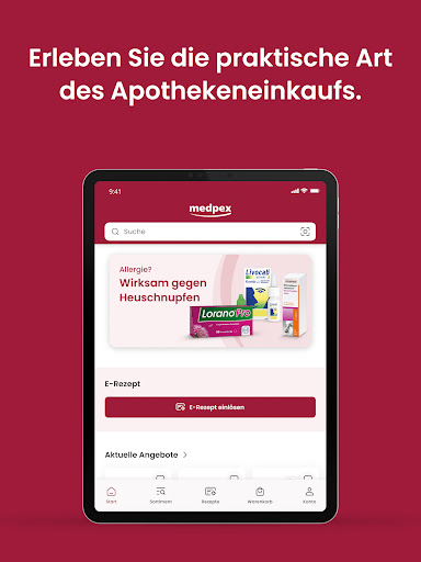 APOTHEKEN-BESTSELLER IN DER MEDPEX APP! In der medpex App kaufen Sie Medikamente, Kosmetik und Pflegeprodukte zu besonders günstigen Preisen. VORTEILE DER MEDPEX APP Bonuspunkte beim Kauf rezeptfreier Produkte sammeln und gegen tolle Prämien eintauschen Einfache Produktsuche mit Barcode-Scanner Ausführliche Beschreibungen, Anwendungsinformationen und Beipackzettel zu Medikamenten und anderen Produkten Ehrliche und hilfreiche Bewertungen anderer Kunden Praktische Merkzettelfunktion Bestellhistorie einsehen und unkompliziert Produkte nachbestellen EINFACH UND BEQUEM AM SMARTPHONE UND TABLET BESTELLEN In der medpex App finden Sie aktuelle Apotheken-Bestseller auf einen Blick. Mit Hilfe des Barcode-Scanners oder der einfachen Produktsuche können Sie mit nur wenigen Klicks, auch von unterwegs, Ihren Apothekeneinkauf schnell und einfach per App erledigen und sich bequem nach Hause liefern lassen. RIESIGE AUSWAHL AN MEDIKAMENTEN UND ARZNEIMITTELN ENTDECKEN Die medpex App bietet über 100.000 Produkte in Kategorien wie: • Kosmetik & Wellness • Vitamine & Mineralien • Urlaub & Sonne • Muskeln & Gelenke • Verdauung • Tiergesundheit • Allergie & Heuschnupfen • und vielen mehr. Auch rezeptpflichtige Medikamente können mit entsprechendem Rezept in unserem Apotheken-Versand bestellt werden. Natürlich auch ganz bequem E-Rezepte mit dem Scan der Krankenkassenkarte in der App! GRATIS ZU JEDER BESTELLUNG medpex schenkt Ihnen zu jeder Bestellung eine kostenlose Produktprobe Ihrer Wahl. Sammeln Sie zudem bei jeder Bestellung von rezeptfreien Produkten in unserem Shop Bonuspunkte und tauschen Sie diese gegen tolle Prämien! ERLEBEN SIE ANGEBOTE UND AKTIONEN Es erwarten Sie regelmäßig aktuelle Beiträge, News, Gewinnspiele und Aktionen. Sie erhalten Infos über ein exklusives Gratis-Geschenk, das bei der nächsten Bestellung rezeptfreier Produkte in der medpex App kostenlos mit in den Warenkorb gelegt werden kann. Ihr medpex App Team medpex.de - Apotheken-Versand für Medikamente, Arzneimittel & Kosmetik Kontakt: https://www.medpex.de/kontakt
