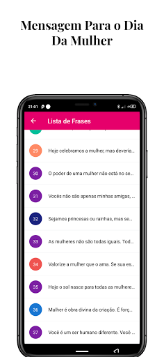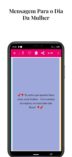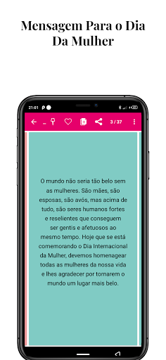 Linda mensagem em homenagem a todas as mulheres, do Dia Internacional da Mulher 2024. O mundo fica muito melhor com elas, pois são elas que dão um toque especial em tudo. Demonstre seu carinho no dia 8 de Março, compartilhe uma mensagem no Dia da Mulher. São inúmeras personalidades famosas, institutos, programas e organizações que visam a valorização do sexo feminino nos mais diversos espectros, priorizando e almejando uma sociedade igualitária, sem preconceitos ou misoginia. Com um histórico tão pesado, entra-se em contradição sobre o real objetivo do Dia Internacional da Mulher, dia 8 de março. Será que devemos comemorar e parabenizar as mulheres que conhecemos ou nos conscientizar e promover a igualdade entre gêneros? Muito obrigado pela sua avaliação positiva, se você não gostar de algo sobre este aplicativo, envie-nos sua opinião com um email antes de nos enviar um comentário negativo. Queremos melhorar e fornecer os aplicativos que você está procurando. Ajude-nos a continuar criando aplicativos gratuitos para você.