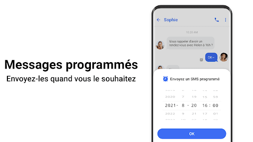 Messenger SMS est une app messagerie (SMS & MMS). Elle est simple, fiable et confidentielle, vous puissiez facilement rester en contact avec vos amis et votre famille. Avec nombreux emojis, thèmes, polices, wallpapers, photo..., vous pouvez personnaliser votre chat & texte de SMS sans limite ! 3000+ emojis, autocollants et GIFs rendent Messenger SMS plus drôle et amusant. Restez toujours en contact avec vos amis en partageant photo, audio, vidéo, calendrier et groupe de message. Utilisez maintenant cette sympa app de chat Messenger pour remplacer les autres ! Avec Messenger, réception et Envoi des messages est en toute sécurité avec Boîte Privée Gratuite, Message Bloqué, Sauvegarde & Restauration SMS et Messagerie Programmée ! Ne vous inquiétez plus de perdre messages privés et de manquer des moments importants. Aussi éviter messages spam pour gaspiller votre stockage de téléphone en bloquant ces messages. Caractéristiques principales Drôle Emoji Messenger - Utilisez 3000+ stickers, emojis et émoticônes directement dans le page de dialogue - Texte Messenger Chat App comportent les emojis et stickers les plus populaires Textart - Gif animé & Emoji - Partagez des milliers de GIFs les plus populaires via Messenger MMS - Transmettez Emojis Art & Autocollants uniques avec vos amis Thèmes Personnalisés - Un grand nombre de thèmes à votre choix - Personnalisez le fond d’écran de SMS comme vous voulez Personnalisation Complète. - Personnalisez bulle de texte, couleur, police et fond d\écran dans Messenger - Prenez une photo comme fond d\écran ou choisissez dans la galerie de photos Sauvegarde & Restauration - Sauvegardez SMS et MMS en cloud, jamais perdus - Restaurez les supprimés ou perdus à tout moment en un clic Boîte Privée Messenger - Cryptage de messages et de données personnelles, verrouillés dans la boîte privée - Icône de la boîte privée cachée pour mieux protéger votre vie privée contre les piratages informatiques SMS Blocker - Pas de souci pour les messages spam occupant de l\espace de stockage - Filtre SMS vous aide à bloquer les messages spam efficacement Calendrier & SMS Retardé - SMS Retardé vous permet de corriger les fautes dans le texte avant la transmission Ne manquez jamais les moments importants grâce à Calendrier SMS Auto-mémoriser vos contacts - Après chaque appel, ajoutez le contact dans la liste avec une seule clique. Pas besoin de saisir son numéro - Modifiez et utilisez d\autres fonctionnalités de Messages directement à partir de la page du contact Mode Conduite & Auto-réponse - Dans le mode conduite, les notifications de messages seront désactivées, mais celles d’appels restent toujours Dans ce mode, Auto-réponse sera activé pour réduire les distractions au minimum D’Autres Avantages - Envoyez des MMS avec photo, audio, vidéo à plusieurs amis avec une clique - Copiez et collez rapidement dans le Clipboard - Recherche efficace afin de trouver le texte utile Contactez-nous E-mail: smsmessagesfeedback@gmail.com Messenger SMS n\a jamais été aussi génial avec emoji, GIF, autocollant, thème, boîte privée, bloqueur, sauvegarde & restauration et messages programmés !. Nous travaillons constamment à rendre \Messenger\ parfait pour vos besoins de textos SMS et MMS. N\hésitez pas à nous envoyer e-mail pour toute suggestion. Si vous appréciez certaines fonctionnalités de Messenger, partagez à vos amis ! Politique de confidentialité: https://adsms.textfun.net/policy/privacy_policy.html Conditions d\utilisation: https://adsms.textfun.net/useragreement/useragreement.html