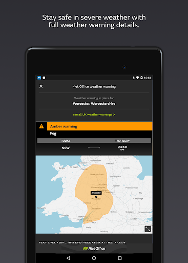 Winner of two awards in the World Meteorological Organization (WMO) International Weather App Awards 2020 for specialised app / weather warnings and for our public weather forecasts, including usefulness, reliability, quantity and quality of information. KEY FEATURES: * Quick switch between daily and hourly forecasts for your favourite locations * Interactive rainfall map and text forecast for the next 24 hours, or previous 6 hours (manual scroll or using play feature) * Real time UK National Severe Weather Warnings with the interactive warnings map for your UK saved locations * Instant notification of the official UK National Severe Weather Warnings for your saved locations– including snow, strong winds, ice, fog & rain * Watch the latest video weather forecasts PERSONAL, ACCURATE FORECASTS INCLUDING: * Interactive UK rainfall map; both 24-hour forecast and 6 hour observations * Interactive UK National Severe Weather Warnings map * UK surface pressure map * Probability of precipitation (rain, sleet, snow, hail, & drizzle) * Actual and \feels like\ temperature * UK National Severe Weather Warnings alerts * UK national weather forecast video * Wind speed, direction and gusts * Sunrise & sunset times * Air pollution forecasts * Pollen push notifications (March to September) * Local weather forecasts unlimited locations * Ability to change your unit settings for temperature & wind speed * UV Index, visibility, humidity & pressure AD-FREE VERSION * Don\t like ads? Our app includes a £2.99 in-app purchase to remove all advertising FEEDBACK The Met Office is committed to delivering new features based on your feedback & the reviews we receive. If you love our app rate and review it in the app store. If you have any suggestions please email enquiries@metoffice.gov.uk This app is ad-supported. DATA COMPLIANCE The Met Office app uses your location information to give you the most accurate & localised weather forecast possible. To turn off location settings at any time, select \Settings\ on your device, then the Met Office App, then disable location. To get a local forecast you will need to search & save locations within the app. For more information on how we use any personal information collected about you, please see our Privacy policy (https://www.metoffice.gov.uk/about-us/legal/privacy) & Cookie policy (https://www.metoffice.gov.uk/about-us/help/cookies) About the Met Office The Met Office is the UK\s national weather service. Recognised as a world leader in providing weather & climate services & as one of the world\s most accurate forecasters. We are also responsible for the UK National Severe Weather Warning Service, mandated by UK Government, which aims to give advance warning of extreme weather to the public. See www.metoffice.gov.uk for more information. Accessibility statement We want as many people as possible to be able to use this mobile application. You can view our accessibility statement at www.metoffice.gov.uk/about-us/what/android-mobile-application-accessibility CONSENT TO INSTALLATION OF THE APP Under data protection laws we are required to provide you with certain information about who we are, how we process your personal information and for what purposes and your rights in relation to your personal information. This information is provided in the Met Office Privacy Policy & it is important that you read that information before installation of this App. HOW YOU CAN WITHDRAW CONSENT Once you provide consent by downloading the app and selecting ‘Agree and continue’, you may change your mind & withdraw consent at any time by uninstalling the App but that will not affect the lawfulness of any processing carried out before you withdraw your consent.