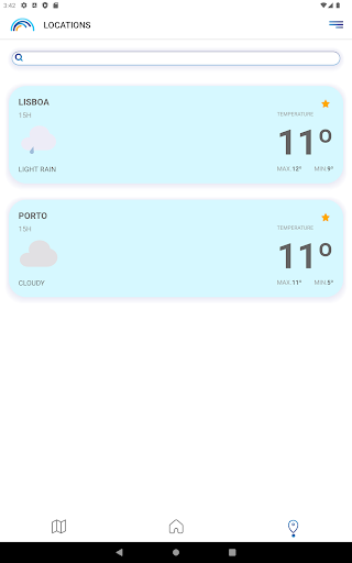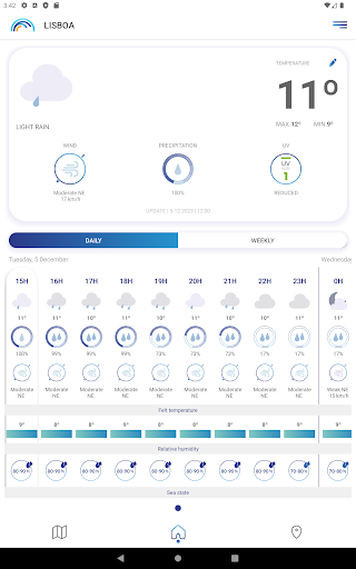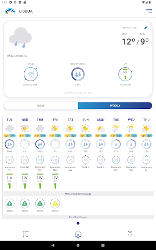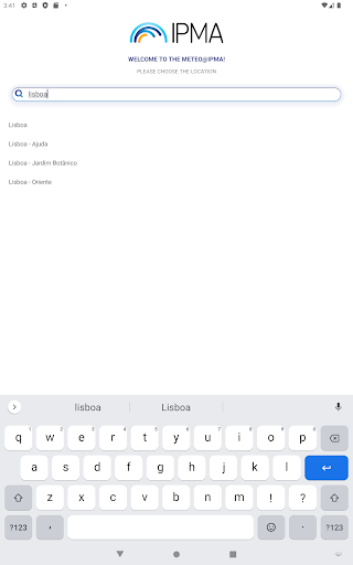 Meteo@IPMA é uma aplicação do Instituto Português do Mar e da Atmosfera, IPMA I.P., de uso gratuito, para dispositivos móveis que disponibiliza informações do estado de tempo e do mar para mais de 300 locais do território Português. Esta versão inclui uma reformulação total da app que facilita a consulta de informação meteorológica detalhada e fidedigna, das quais destacamos: - Previsão do estado tempo até 10 dias. - Informações horárias até ao 3º dia. - Informações tri-horárias do 4º ao 6º dia. - Informações diárias do 7º ao 10º dia. - Informação tri-horárias sobre estado do mar, até ao 3 dia. - Informação relativa aos avisos meteorológicos. - Informação do valor máximo do índice ultravioleta. - Lista de locais predefinida, selecionável através do menu, opção, \localizações\. - Período de atualização: toda a informação é atualizada em 2 períodos do dia, aproximadamente entre as 9 e 10h e entre as 21 e 22h (hora local no continente). - Fuso horário: hora no local em que é válida a previsão. - Unidades: temperatura do ar: ºC; intensidade do vento: km/h; humidade relativa do ar: %; precipitação: classe de precipitação; probabilidade precipitação: %; temperatura da água do mar: ºC; mar total: metro; ondulação: metro; vaga: metro; período das ondas: segundo.