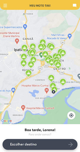 Meu Moto Táxi, é um aplicativo de moto táxi que atua na região do Vale do Aço - MG, os quais localizam as cidades de Ipatinga, Timóteo, Coronel Fabriciano e Santana do Paraíso. Agora é possível chagar ao seu destino com facilidade, rapidez e segurança. Com o aplicativo Meu Moto Táxi, você economiza tempo e dinheiro, além de ter mais praticidade na hora de chamar o seu mototaxista. Não perca tempo e baixe já o melhor aplicativo do Vale do Aço. Nosso aplicativo permite que você chame um de nossos mototáxis e acompanhe o deslocamento do veículo no mapa, sendo avisado quando ele estiver na sua porta. Você ainda consegue ver todos os mototaxistas perto da sua localização com a informação de ocupado ou livre, dando ao nosso cliente uma visão completa da nossa rede de serviço.