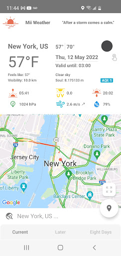 Mii Weather is the weather app that provides current, hourly, 8 days forecast and government alerts (if any), that is available by query search for any place on Earth. Within your location permission, the app instantly tracks a device location and provides current local weather information. You can also see the map moving from a default to the current location view. The app also shows weather map layers that available by click on the weather icon. All data in the app is fetched from openweathermap.org API.