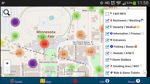 This is your ticket to navigating the chaos of the Minnesota State Fair with ease! It allows users to see the locations and details of over 1000 food and merchandise vendors in an intuitive map that can seamlessly zoom and track your position with GPS. All attractions are displayed on the map by default so that you can always find what is nearby. *Note: Data is from 2018 and may contain a few minor inaccuracies. Most vendor locations remain unchanged. This app will no longer be maintained / updated. The data can also be filtered by category so that the map shows only what you want to see! You can search for a vendor by name and locate their position on the map relative to where you are. The dynamic zooming display with native app controls has three base layers to choose from including a day map, a night map, and satellite imagery. Compare this to the single-vendor low-quality PDF maps that other state fair apps use! This app has been designed to work completely offline and in airplane mode. It includes 20 megabytes of bundled tile layers so that the map dynamically changes as you zoom without needing to use 4G cellular data. This is also useful as wireless towers are often overloaded during the fair, making offline mode essential! GPS location will still function in airplane mode, so never worry about getting lost! Points and point clusters are labeled with unique icons and/or marker colors based on their attributes so that they can be effortlessly identified at a glance. Vendors offering promotional items as part of the Blue Ribbon Bargain Book deals are listed with a larger icon that is bright yellow to help you quickly locate the deals and make the most of your money at the fair! When any point is clicked, it will display a popup that gives a summary of information regarding the vendor, what they are selling, and where they are located. The map includes 9 categories of food vendors, 18 categories of merchandise vendors, and a wealth of practical data such as the locations of restrooms, ATM machines, security, artistic points of interest, parking lots, smoking areas, hand-washing stations, storm shelters, rides, games, WiFi hotspots, and more! Use GPS with your smartphone to locate yourself in the jungle of the fairgrounds and clearly see everything that is nearby. Prevent unnecessary stress and effort by displaying only the vendors that you want while getting the best deals and promotions! Always know where amenities such as restrooms, storm shelters, and exit gates are at as these points will not cluster on distant zooms like the food and merchandise vendor points! Unclustered points can still be turned off if you prefer not to use these layers. All of the events are outlined and summarized on the info page with links to display the locations on the map and a weblink to the official State Fair schedule. This includes concerts and other stage performances, fun attractions like rides, games, and other amusements, all of the major fair buildings such as the Grandstand, 4H, etc., and animals such as rabbits, sheep, goats, horses, birds, steer, pigs, etc. This is the easiest way to quickly find the things that interest you and make the most out of your time at the fair! You may remember our app from 2017, where we had thousands of downloads and a great amount of useful feedback. We listened to your input and have improved this app in a number of ways! We paid close attention to what the other related apps lack and have made every effort to provide the best and most comprehensive State Fair App available! Feel free to contact us using the form inside the app with any suggestions, comments, or ideas! By purchasing this app, you are supporting a promising cartography business headquartered right here in Saint Paul, MN. Thank you for contributing to the success of small businesses in our great state and supporting the initiatives of GeoPOI LLC! Your encouragement, feedback, ratings, and reviews are greatly appreciated!