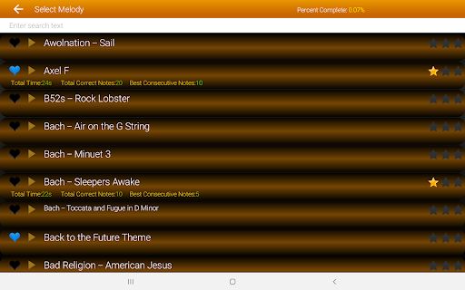 Apprenez à jouer vos chansons préférées sur le piano en jouant la mélodie • Plus de 1000 chansons pour apprendre de différentes époques et genres. • Piano hautement configurable (multitouch, glissando, surlignage, étiquettes de notes) • Piano redimensionnable adapté à tous les appareils et tablettes. • Impressionnez vos amis avec votre répertoire en apprenant les chansons les plus célèbres. Meilleur piano Réglez la taille des touches du piano. Plus les touches sont grandes, plus il est précis d\obtenir les bonnes notes, plus les touches sont petites, vous pouvez voir les 3 octaves à l\écran. Prise en charge complète de tous les téléphones et de toutes les tablettes. Apprenez rapidement et efficacement en vous concentrant sur des parties spécifiques de la chanson. Authentiques sons de piano à queue numérisés produits par un ingénieur du son professionnel. Faites progresser votre piano rapidement en ajustant la vitesse de la chanson en fonction de votre niveau ou mettez-vous au défi de jouer à l\oreille en désactivant les notes. Augmentez / diminuez le volume de lecture de la chanson, ce qui est idéal pour le mode Play along. Devenez un meilleur musicien Développez votre capacité à jouer à l\oreille. Apprenez des chansons de piano rapidement et efficacement grâce à une méthode de lecture et de répétition. Commencez par quelques notes et augmentez jusqu\à ce que vous maîtrisiez la chanson. Convient à tous les âges (enfants à adultes) et à tous les niveaux (débutant à avancé). Gratuit 100 chansons gratuites du catalogue complet sont immédiatement disponibles sur cette version. Jouez bien pour débloquer toutes les chansons. Liste des morceaux La liste des chansons est variée et contient toutes les plus grandes chansons des meilleurs groupes et des meilleurs genres tels que Rock, Classique, The Latest Pop, Film Theme Tunes, TV Theme Tunes, 60s, 70s, 80s, 90s, Naughties, Modern, Alternative, Indé, latin et plus encore. Mélodies Les morceaux capturent la mélodie principale / le refrain / l\intro / le couplet et contiennent jusqu\à 500 notes. Piano Melody - Learn your favorite songs and play by ear