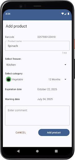 Cette application vous aide à gérer le contenu de votre congélateur, évitez le gaspillage alimentaire et facilitez la planification de votre consommation. Visualisez tous vos produits, recherchez et filtrez-les, suivez ce qui doit être rapidement utilisé. Scannez et enregistrez les code-barres pour simplifier les ajouts futurs et la recherche de produits. Fonctionnalités principales: • Gestion de plusieurs congélateurs • Catégories personnalisées • Avertissement et date d\expiration des produits • Filtres et recherche • Scan de codes-barres (données locales uniquement)