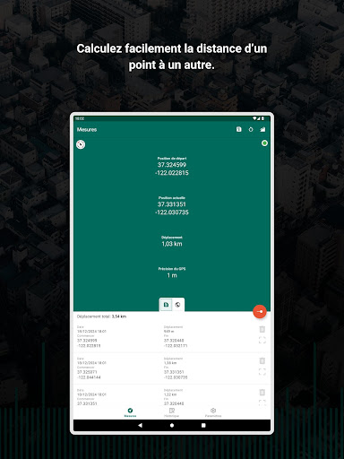 Ruban à mesurer GPS est une application qui calcule la distance d’un point A à un point B. C’est très simple car la seule chose que vous avez à faire est appuyer sur un bouton pour enregistrer la position actuelle. L’application n’a pas été créée pour mesurer des petites distances ou pour l’utilisation en intérieur. Vous ne pouvez pas non plus vous plaindre à propos de la précision car une erreur de 5 mètre est courante. Il n’y a aucune raison de mesurer la taille d’une voiture ou de votre bras. Unités inclues : - Métriques (kilomètres et mètres) - Impériales (miles et pieds) Vous pouvez changer le formats d’affichages des coordonées pendant les trajets. Fonctionnalités : - Partagez votre position et votre distance via message, réseaux sociaux ou email. - Vérifiez votre position sur Google Maps ! - Cliquez et partager vos coordonées actuelles par SMS - Sauvegardez vos mesures et vérifiez les sur Google Maps depuis l’application - Un tutoriel simple vous expliquera comment utiliser l’application - Copier les données en appuyant sur un bouton - Customisez les unités et comment les coordonées sont affichées - Vous pouvez choisir si vous voulez travailler avec une carte ou du texte - Tous les segments mesurés sont maintenant visible en liste en bas - Les listes avec les mesures enregistrées sotn plus faciles à lire et ne contiennent que les informations importantes - Vous pouvez modifiez les anciennes mesures et ajuster tous les segments La latitude et la longitude dans les formats suivants : - DMS Degrés, minutes et secondes séxagésimales - DMM degrés et minutes décimales - DD degrés décimaux - UTM Transverse Universelle de Mercator - Système militaire de référence par grille (SMRF) Notre application est livrée avec une toute nouvelle application pour les montres avec Wear OS. Vous pouvez facilement effectuer toutes les mesures sans utiliser votre téléphone et synchroniser ensuite les données pour profiter de la visualisation de vos mesures enregistrées sur un écran plus grand ! Privacy Policy: https://hotandroidappsandtools.com/legal/privacy/mygpstapemeasure