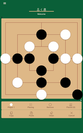 Des règles : * Un joueur qui aligne trois de ses pièces sur une ligne du plateau dispose d\un moulin et peut retirer la ou les pièces de son adversaire. * Tout joueur réduit à deux pièces et n\a pas la possibilité de former de nouveaux moulins perd ainsi la partie. * Si un joueur ne peut pas déplacer une de ses pièces (est coincé), il a perdu la partie. Caractéristiques : * Prend en charge de nombreuses variantes de règles, telles que le jeu de moulin à neuf hommes et le jeu de moulin à douze hommes, règle « Vol » ou aucune règle « Vol » * Jouez contre l\IA ou jouez des deux côtés * Niveau de jeu réglable * Hautement configurable * Thèmes de couleurs * Accessibilité