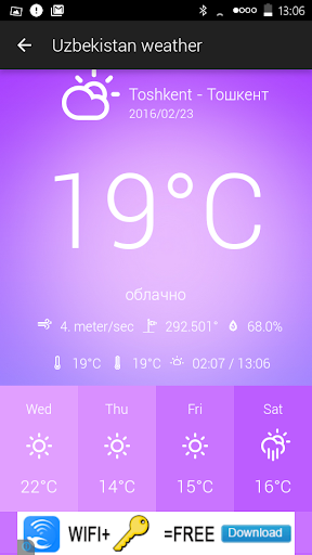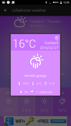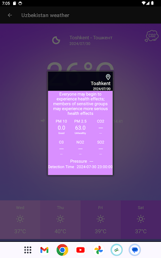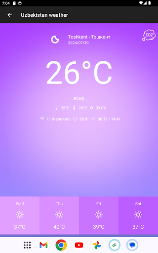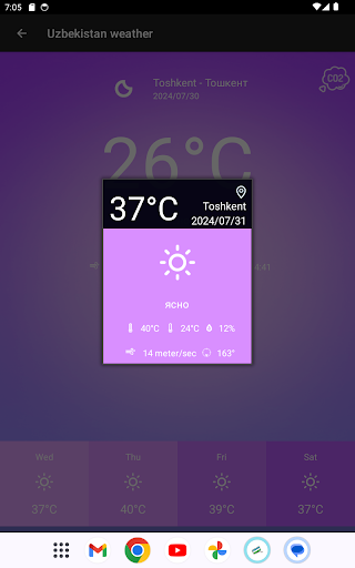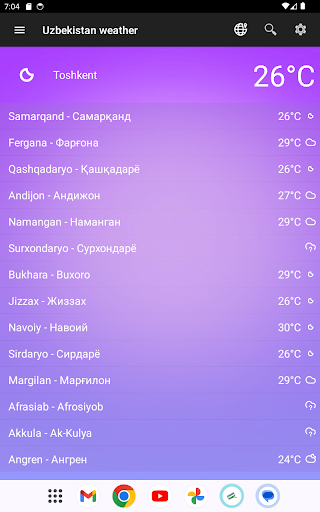 L’application Météo Ouzbékistan pour smartphones Android vous offre une expérience de météo innovante. Météo Ouzbékistan bénéficie d’une interface avec des fonctionnalités simples et intuitives qui permet un accès facile aux données. Elle permet aussi un accès en temps réel aux temps qu\il fait et qualité de l\air à tout moment de la journée. Consultez un ensemble complet de prévisions à 5 jours. ★ Interface simple et intuitive ★ Plus de 75 villes et lieux en Ouzbékistan ★ Widget configurable ★ Prévisions jusqu\à 5 jours ★ Qualité de l\air pour la plupart des villes ★ Liste configurable de villes sur l\interface d’accueil ★ Une nouvelle interface de condition météorologique pour votre localisation Pour des questions, des suggestions ou des problèmes, s\il vous plaît n’hésitez pas à nous contacté via l\application ou par des commentaires. On apprécie grandement les commentaires et votre patience pendant que nous développons de nouvelles versions.