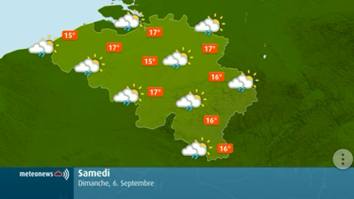Retrouvez chaque jour rapidement et simplement la situation et les prévisions meteo à 10 jours pour votre région ou toute autre ville du globe actualisées en temps réel par des météorologues! - Flash TV actualisés trois fois par jour! - Flash TV de la météo du week-end, évolution en Belgique, les tendances saisonnières, la météo en Europe - Prévision meteo pour la nuit / matin / après-midi / soir - Animation radar pour 3 heures - Radar des précipitations, le satellite, les vents - Valeur de la fiabilité des prévisions - Probabilité d\ensoleillement et de précipitations - Température moyenne, minimale et maximale - Température ressentie - Force et direction du vent, force des rafales de vent - Brouillard - Graphiques heure par heure - Limite des chutes de neige - Limite zéro degré - Visibilité rapide pour 10 jours en mode paysage hors TV et radars Choisissez votre ville ou localité et tous vos villages favoris. Source et partenaire: MeteoNews.be