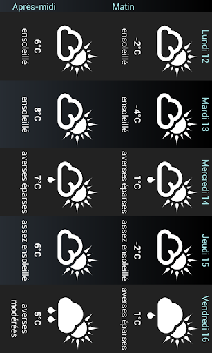 Retrouvez chaque jour rapidement et simplement la situation actuelle et les prévisions meteo pour votre région ou toute autre ville de la planète actualisées en temps réel par des météorologues! - Flash et journal TV présenté trois fois par jour! - Flash TV de la météo du week-end, la météo routière, les tendances saisonnière, la météo en Europe - Webcams animées en suisse - Prévision meteo pour la nuit/ matin / après-midi / soir - Animation radar pour 3 heures - Radar des précipitations, du vent, le satellite, les courants Options printemps - été - automne de www.meteofun.com - Météo des plages - Température des lacs - rivières - piscines - Astronomie, levé et couché du soleil et de la lune - Informations sur les allergies avec situation des pollens pour les arbres et les plantes - Niveau de pollution; Ozone - Oxyde Options hiver de www.meteoski.ch - Toutes les stations en Suisse avec états des pistes pour; ski – ski de fond - luge - Vérifier l’enneigement grâce aux webcams en direct des pistes de ski - Les dernières chutes de neige en un clin d’œil - Limite des chutes de neige - Limite zéro degré Les informations complémentaires tout au long de l\année: - Valeur de la fiabilité des prévisions - Probabilité d\ensoleillement et de précipitations - Température moyenne, minimale et maximale - Température ressentie - Force et direction du vent, force des rafales de vent - Brouillard - Graphiques heure par heure - Visibilité rapide pour 10 jours en mode paysage hors TV et radars Choix de la ville et même les plus petits villages que vous connaissez! Source et partenaire: MeteoNews SA