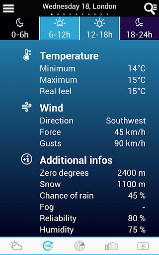 Retrouvez chaque jour rapidement et simplement les prévisions météo pour le Portugal supervisées 24/24 par MeteoNews et actualisées en temps réel! - Prévision pour le matin / après-midi / soir - Animation radar des précipitations - Valeur de la fiabilité des prévisions - Probabilité d\ensoleillement et de précipitations - Température moyenne, minimale et maximale - Température ressentie - Force et direction du vent, force des rafales de vent - Limite des chutes de neige - Limite zéro degré - Brouillard - Graphiques - Humidité et pression Visibilité pour 10 jours en mode paysage. Choix de ta ville et même les plus petits villages autour du monde! Contenu délivré par MeteoNews
