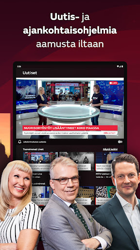 MTV Katsomosta näet ilmaiseksi MTV3:n, Subin ja AVA:n suosituimmat ohjelmat sekä tuhansia tunteja realitya, draamaa ja dokkareita, joita et näe muualta. Tietoa MTV Katsomosta: MTV Katsomon käyttäminen edellyttää sisäänkirjautumista. Kirjauduttuasi sisään voit luoda listoja suosikkiohjelmistasi ja jatkaa katselua siitä mihin jäit, laitteesta riippumatta. Voit myös tilata sovellukseen ilmoituksen, kun suosikkisarjastasi on ilmestynyt uusi jakso. Sovellus on saatavilla myös Android TV -laitteisiin, joihin on asennettu Android 5.0 tai tätä uudempi käyttöjärjestelmäversio. Heräsikö kysymyksiä? MTV Katsomon ohjeissa osoitteessa on vastaukset asiakkaiden yleisimpiin kysymyksiin sekä asiakaspalvelumme yhteystiedot. Ongelmatilanteessa löydät siis avun ohjeista ja tarvittaessa voit ottaa yhteyttä ripeään ja ystävälliseen asiakaspalveluumme. Kirjaudu MTV Katsomoon ja nauti ohjelmistamme milloin ja missä haluat, täysin ilmaiseksi!