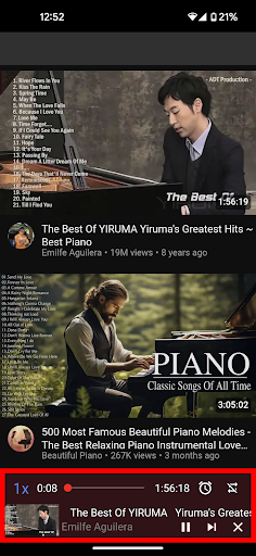 ➤ MusicTube, écoutez de la musique à partir de vidéos. Cette application vous permet d\écouter de la musique à partir de vidéos tout en utilisant d\autres applications ou même lorsque l\écran est éteint, c\est vraiment cool :D ➤ Quelques fonctionnalités : - Simple et facile à utiliser : appuyez sur l\icône des écouteurs pour jouer de la musique, appuyez sur la miniature de la vidéo pour regarder la vidéo - Continuez à jouer lorsque l\écran est éteint - Contrôlez le lecteur via la barre de notification et l\écran de verrouillage - Lecture automatique de la chanson suivante - Option de répétition d\une chanson - Options de vitesse - Minuterie pour éteindre - Consomme moins de données que la vidéo (c\est en réalité uniquement de l\audio) - Totalement gratuit et sans publicités pour interférer avec votre écoute Amusez-vous :) ➤ Avertissement : - Cette application utilise un site mobile pour afficher et rechercher des vidéos. - Toutes les vidéos utilisées sur cette application proviennent de ce site, cette application ne possède aucune vidéo.